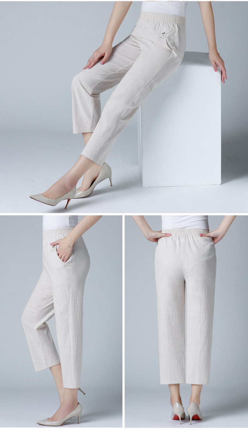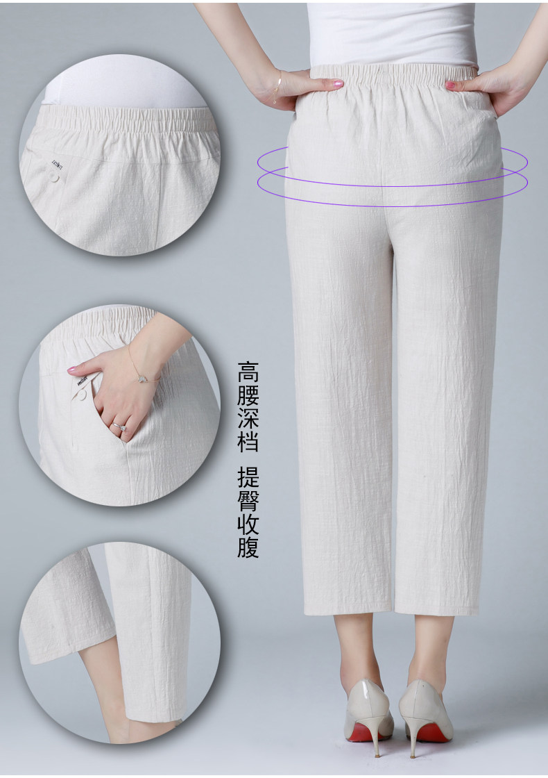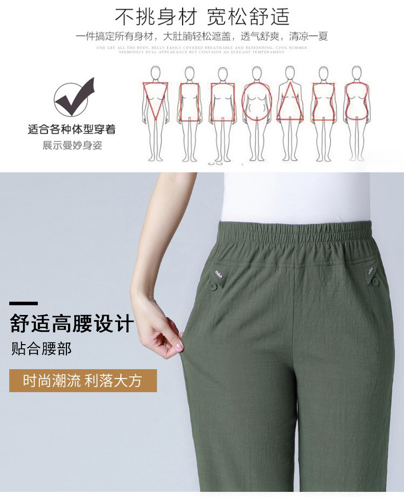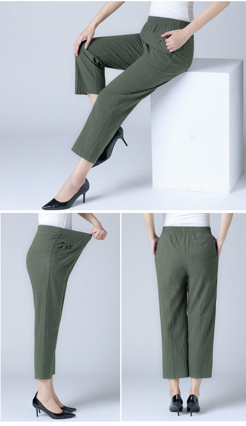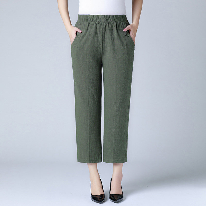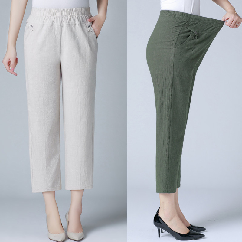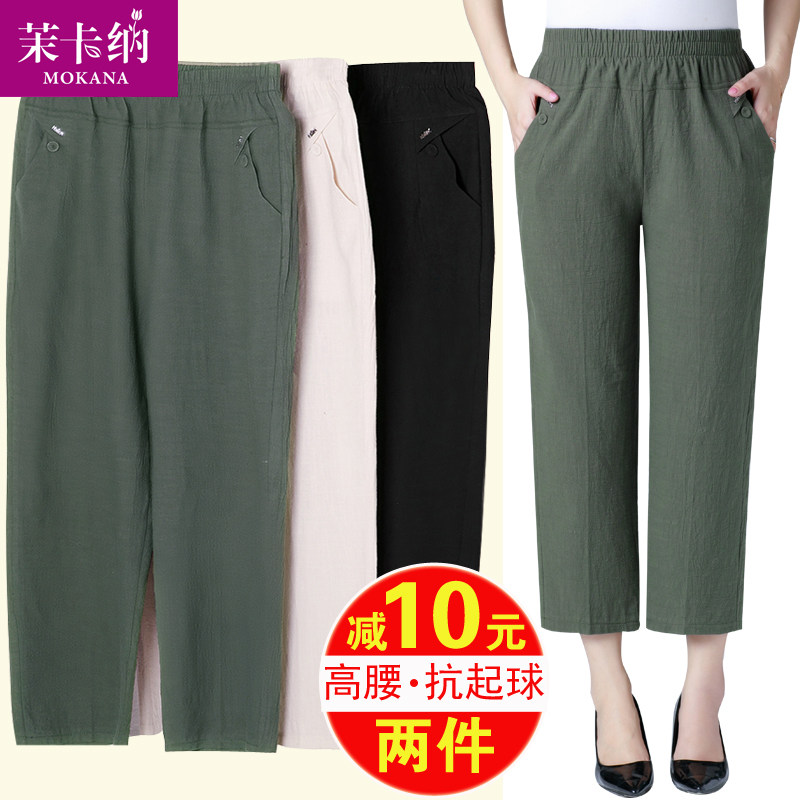 Летние тонкие штаны для матери, для среднего возраста, эластичная талия, оверсайз, высокая талия