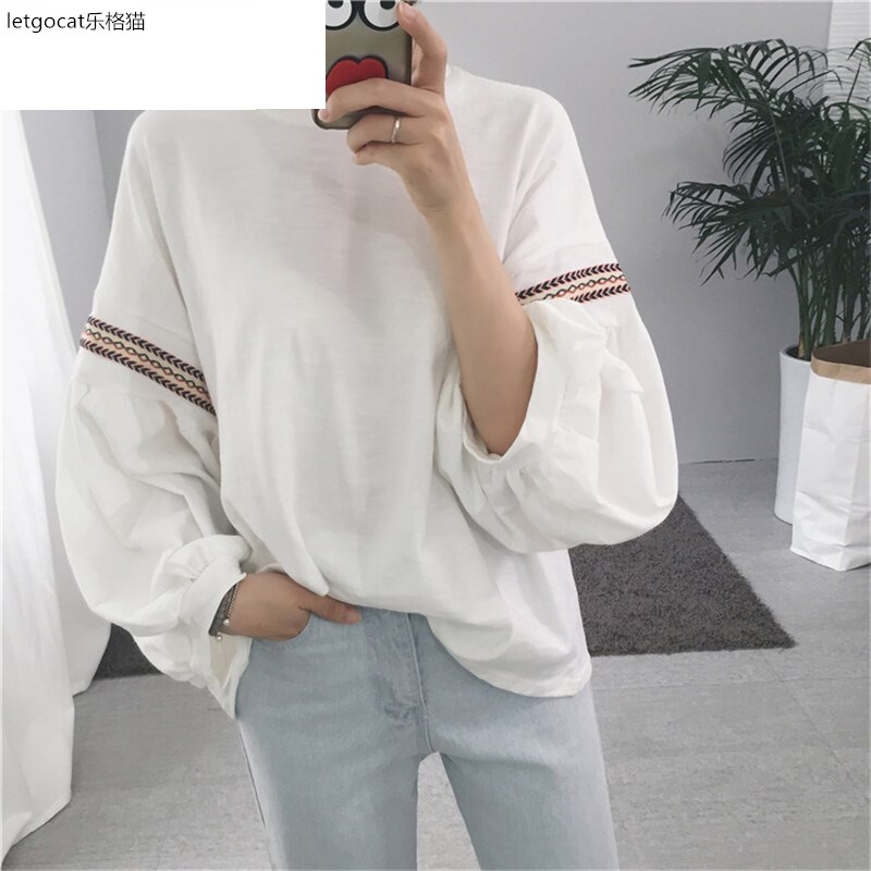 Летняя летняя одежда, фонарь, лонгслив для школьников и студентов, в корейском стиле, оверсайз, для средней школы