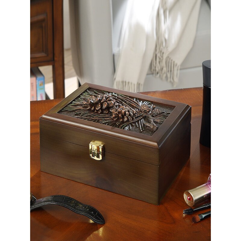 Деревянное ювелирное украшение, сундук с сокровищами, вместительная и большая коробочка для хранения, антикварный аксессуар, коробка для хранения, простой и элегантный дизайн, китайский стиль