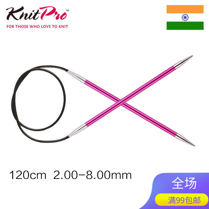 Прекрати KnitPro Zing100/ 120 см алюминиевый алюминиевый красочный кольцевой иголь