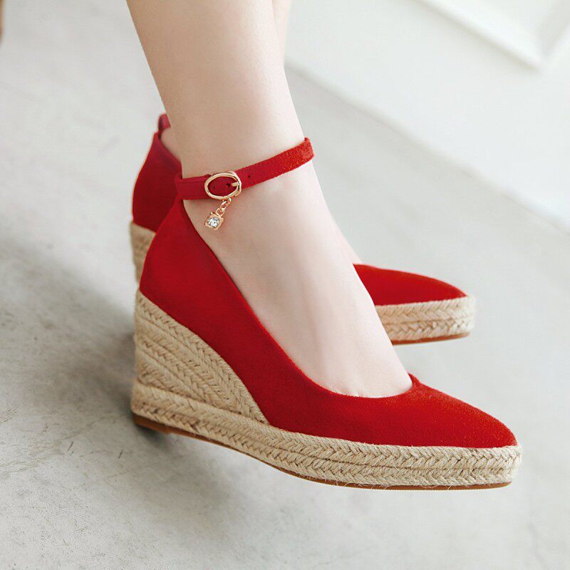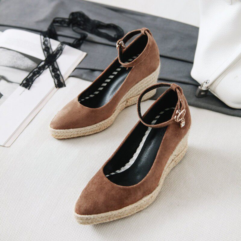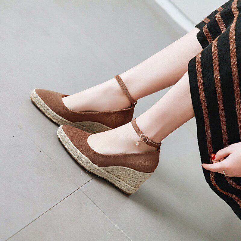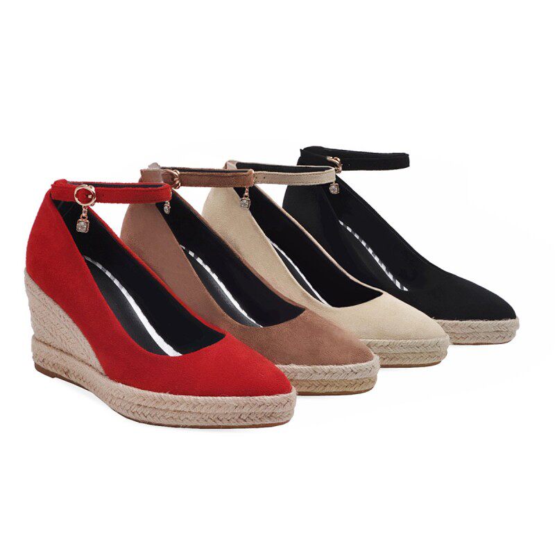 Матовые соломенные туфли на высоком каблуке с низким вырезом с ремешком, большой размер
