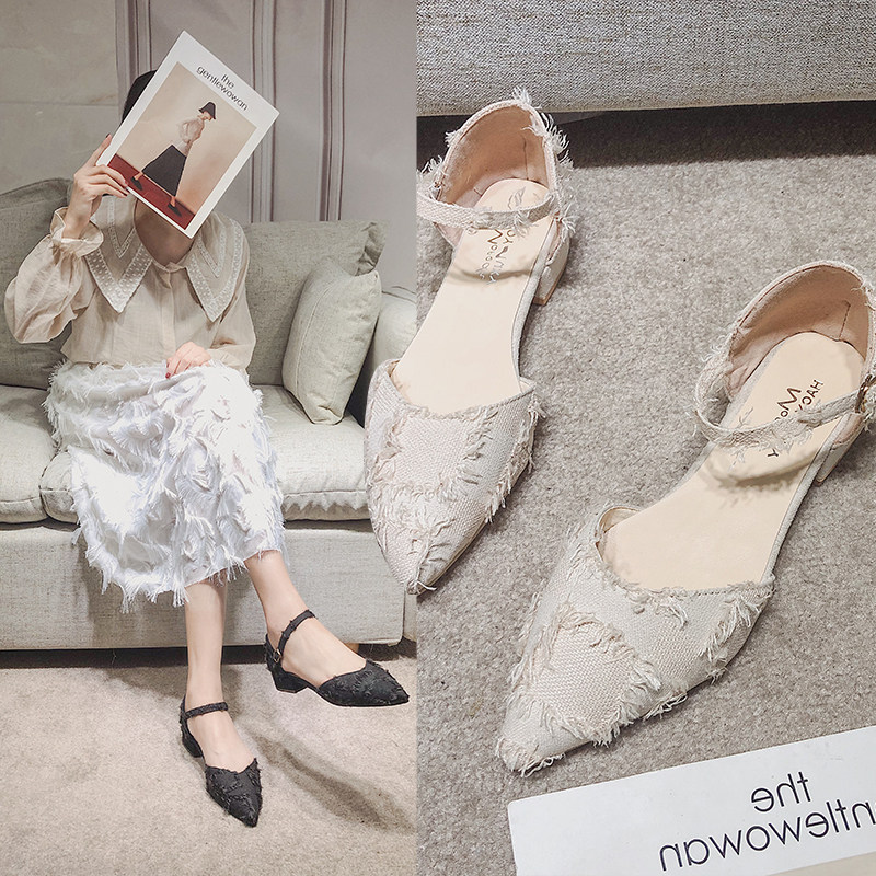 Весенние туфли на высоком каблуке с заостренным носом, универсальные сандалии с низким вырезом, обувь, 2020, в корейском стиле
