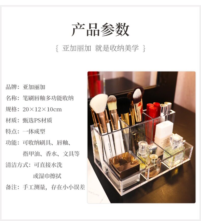 Прозрачная акриловая настольная кисть, коробка для хранения, карандаш для бровей, блеск для губ, щетка