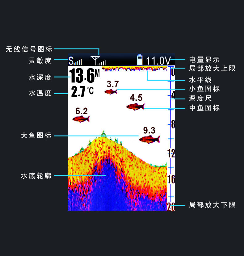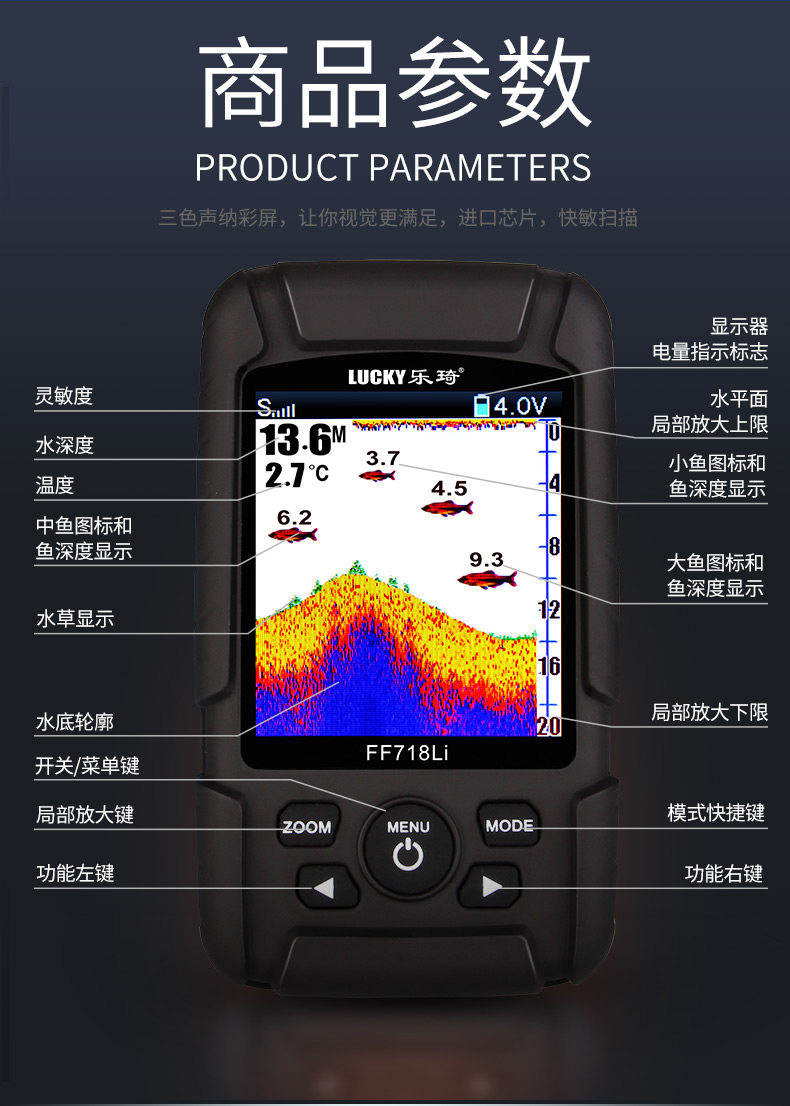 乐琦 Подводная разведка рыба визуальная рыбалка ультразвука Найти рыбацкую рыболовную ловлю рыбы