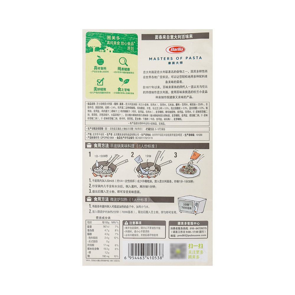 Паста Пумедо с сыром и беконом 528 г в упаковке с ингредиентами для двух персон