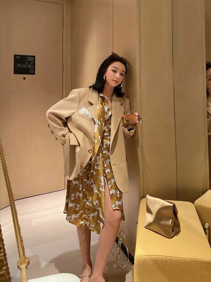 Осенний пиджак классического кроя на лацкан, 2023, в корейском стиле