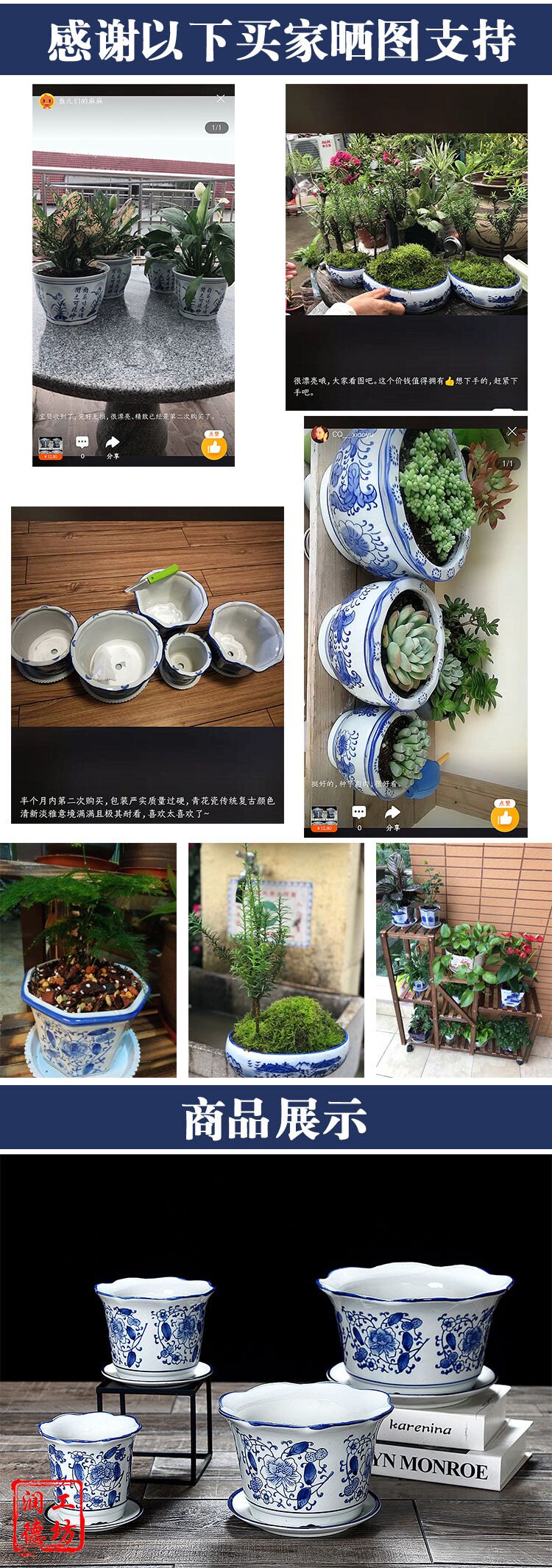 Сине-белый керамический цветочный горшок, большой комплект, китайский стиль, оптовые продажи