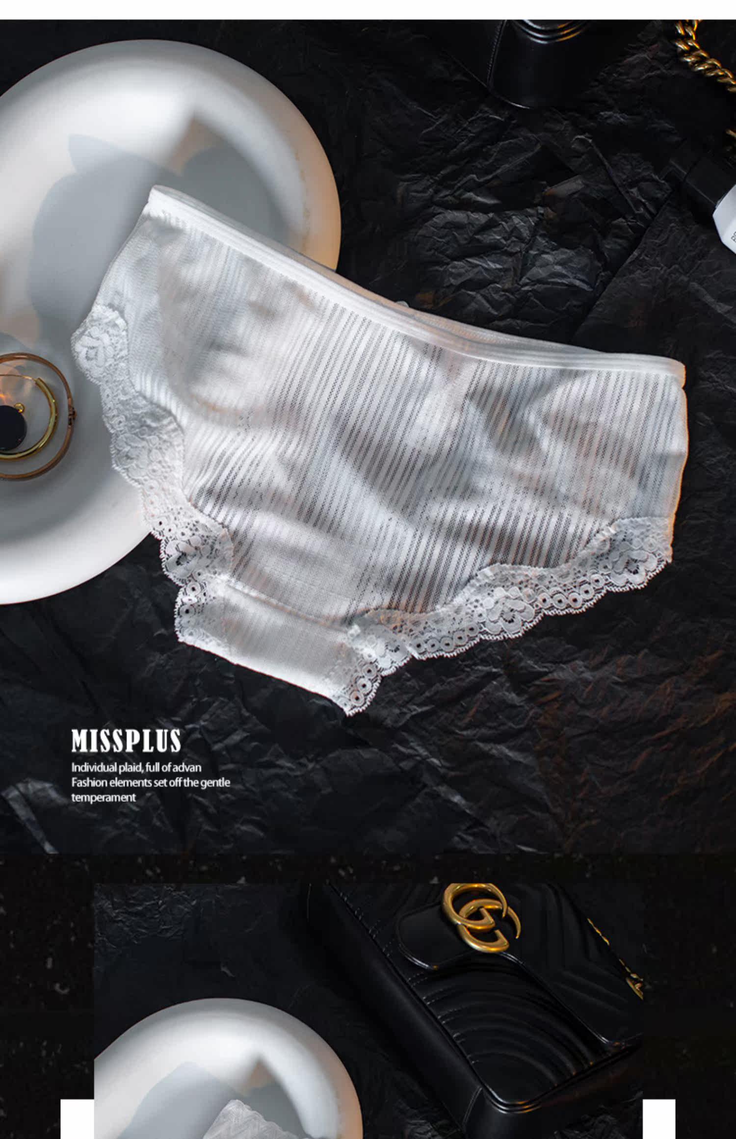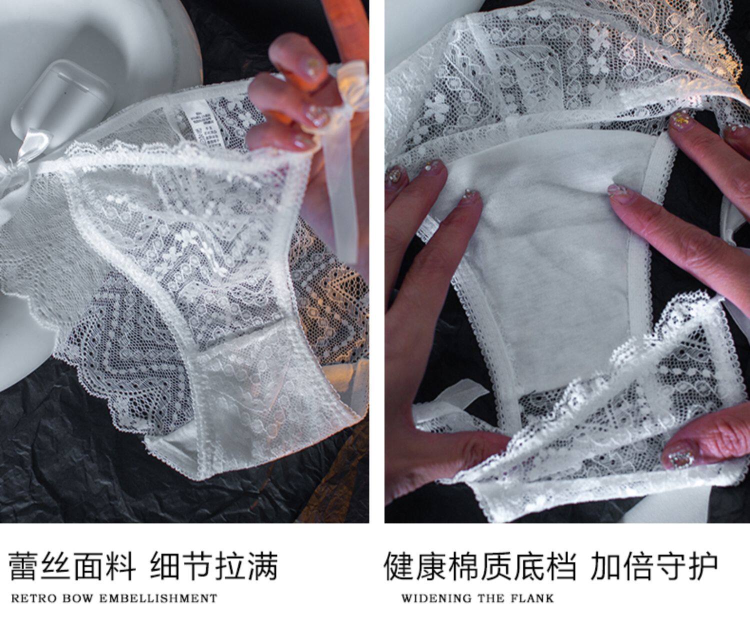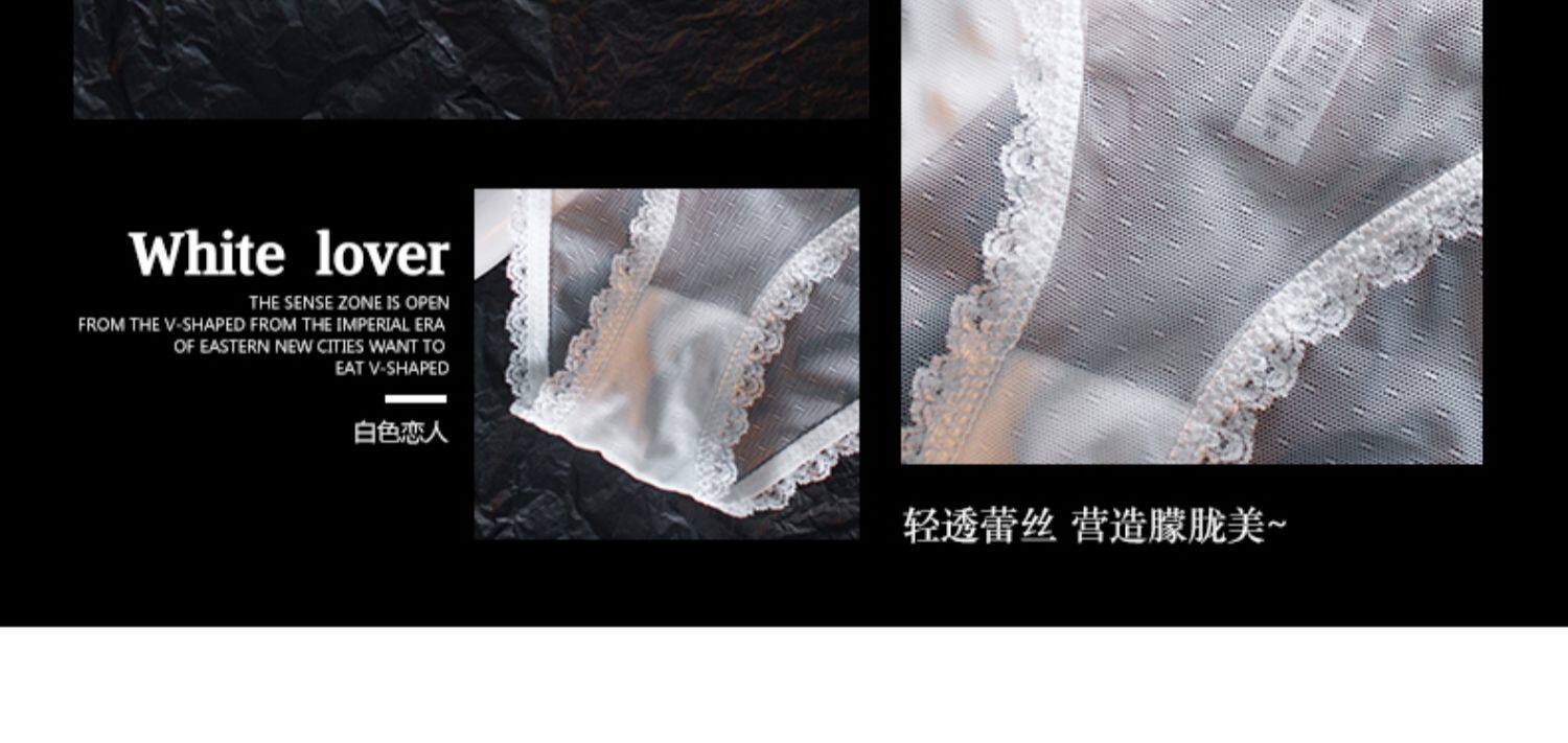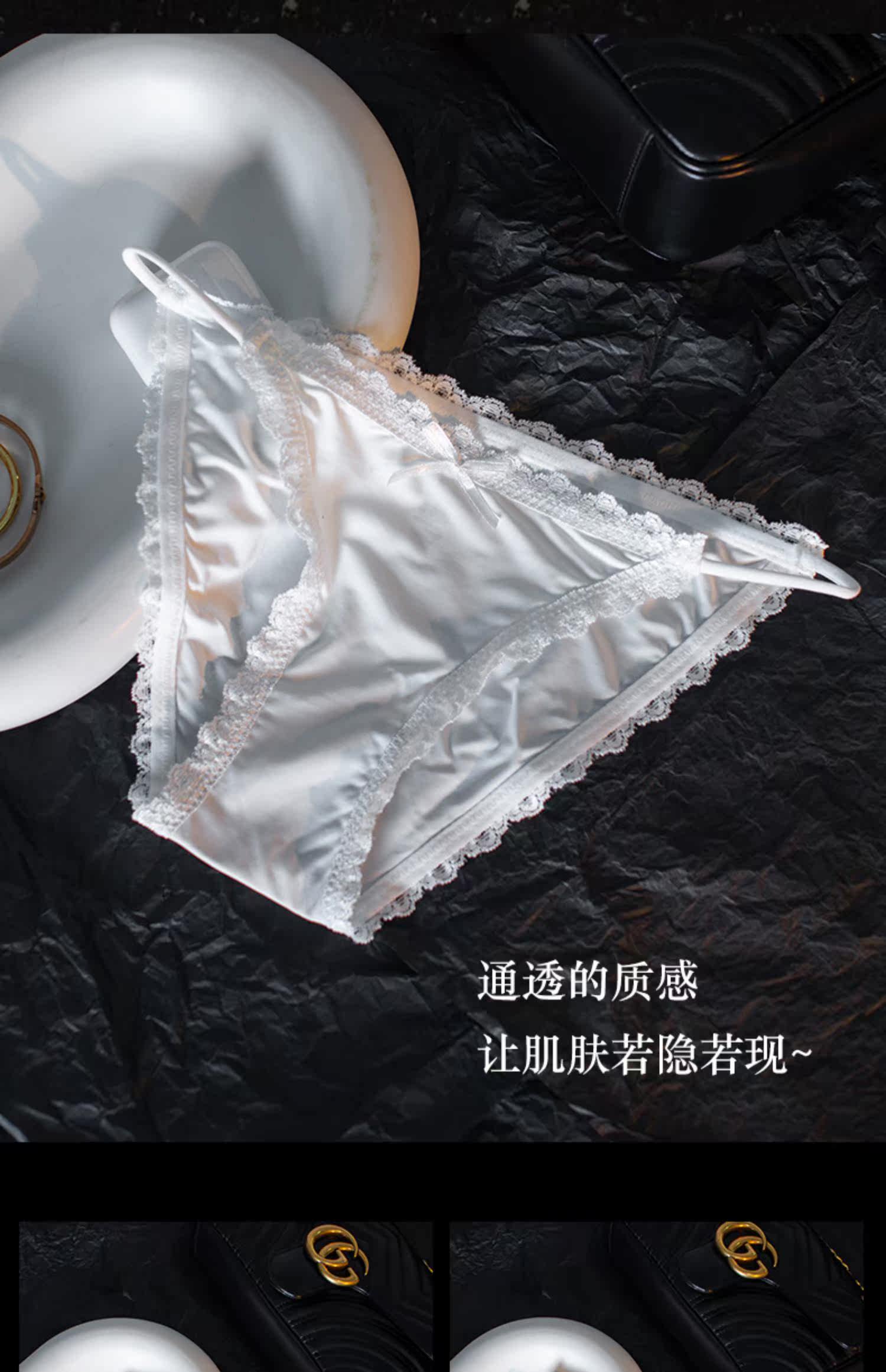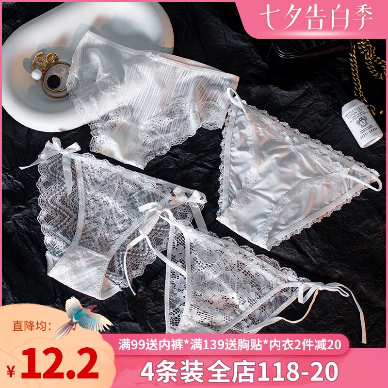 Сексуальные шелковые белые кружевные трусы, ультратонкие тонкие дышащие хлопковые антибактериальные штаны, средняя посадка