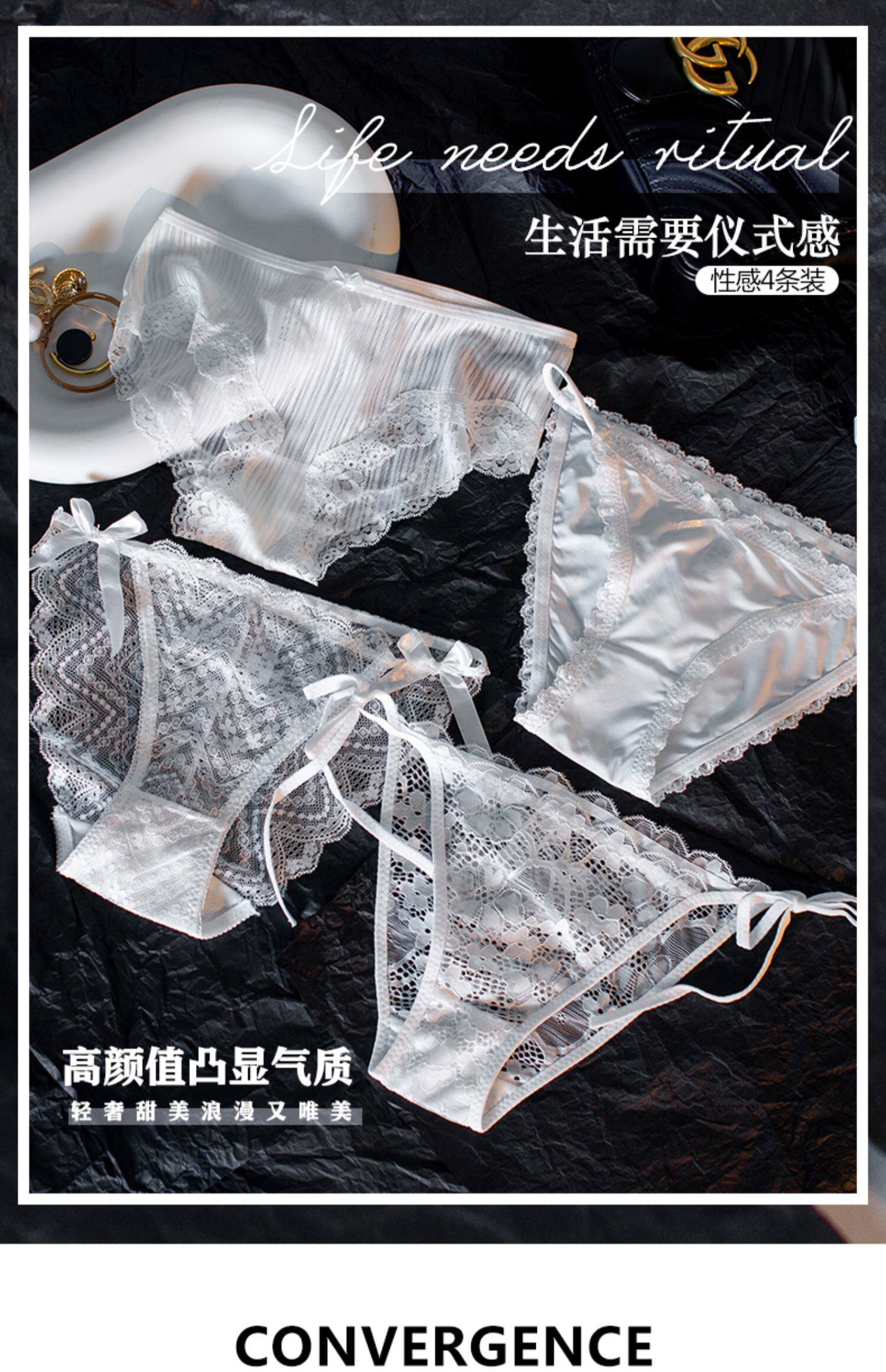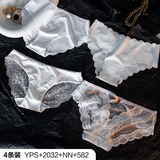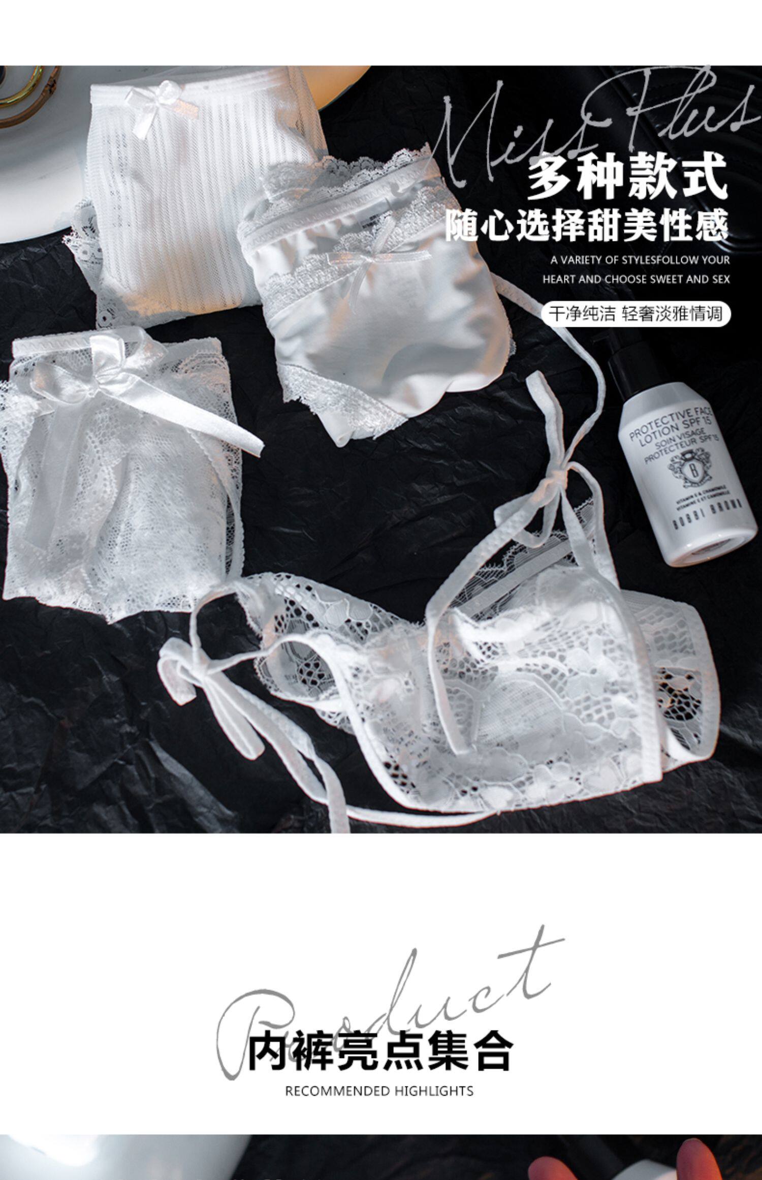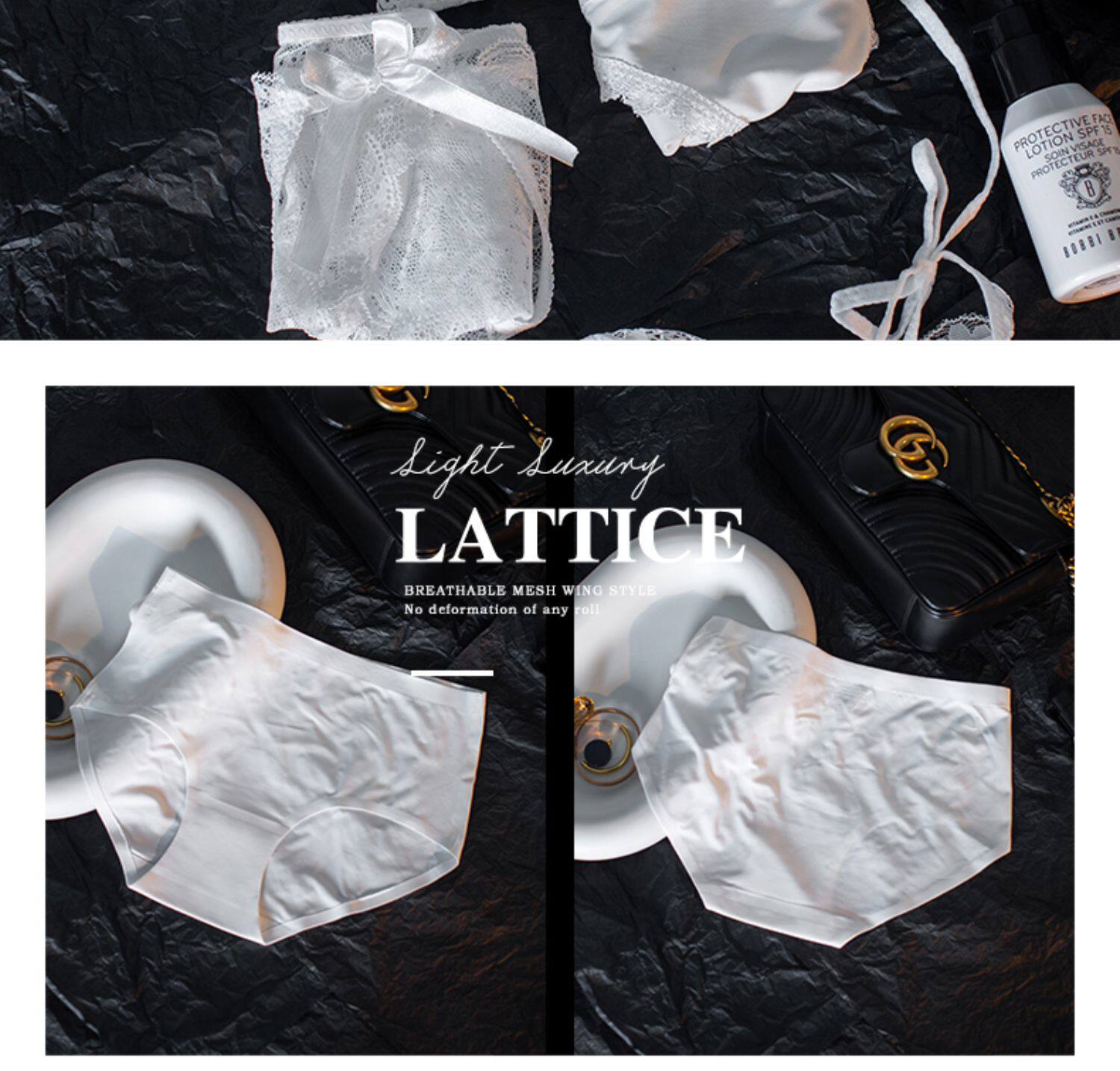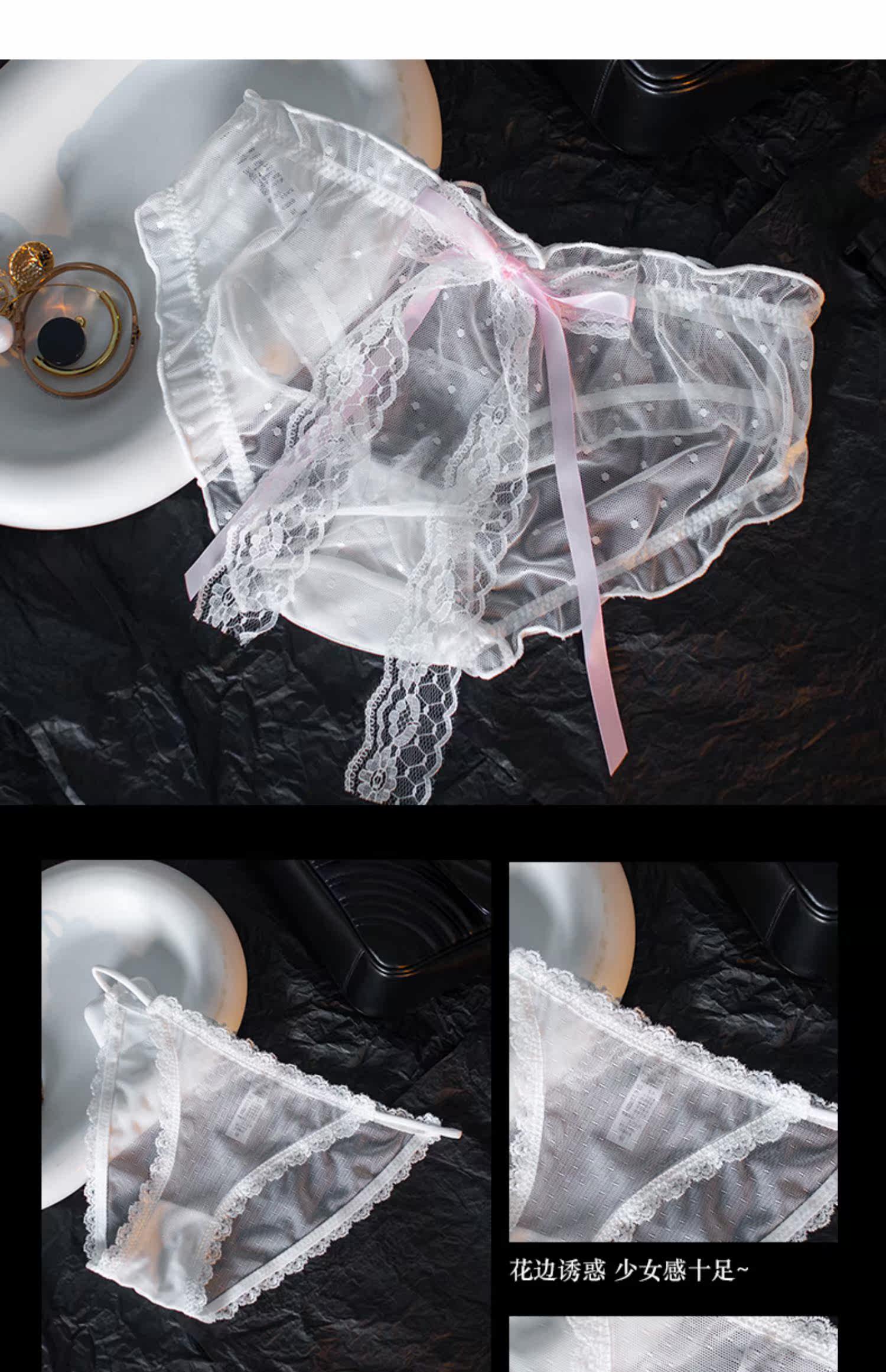 Сексуальные шелковые белые кружевные трусы, ультратонкие тонкие дышащие хлопковые антибактериальные штаны, средняя посадка