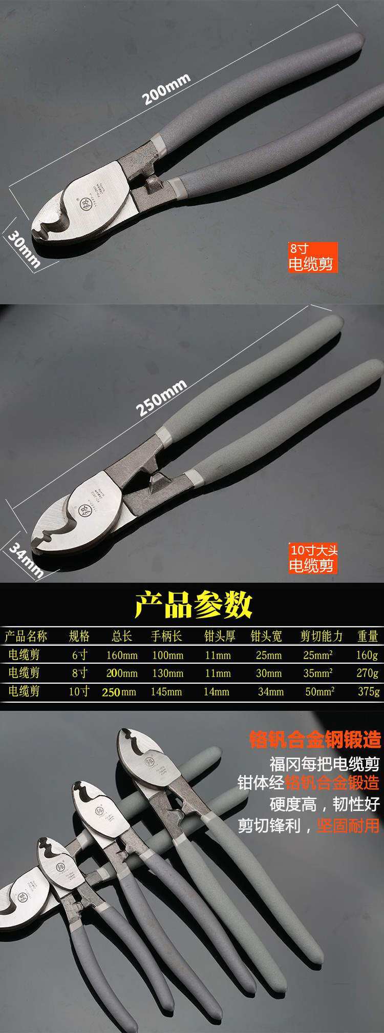 Кабель, ножницы, укрепляющие кабельные клещи, кусачки, 6 дюймовый