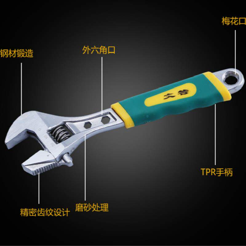 Разводной ключ, многофункциональный инструмент для перемещения, большое отверстие, универсальная доска, 10-дюймовая труба, небольшой регулируемый ротовой ключ двойного назначения.