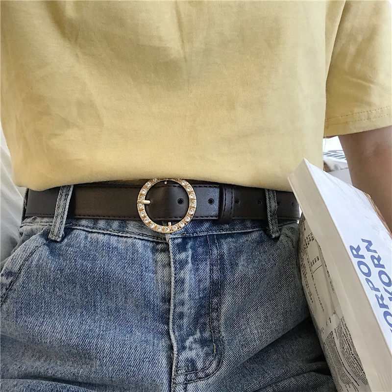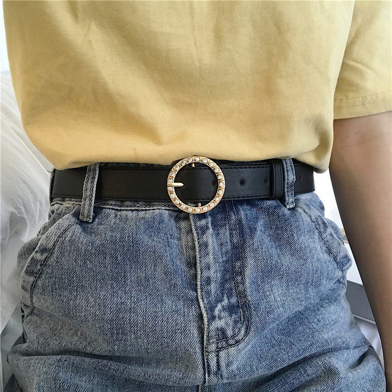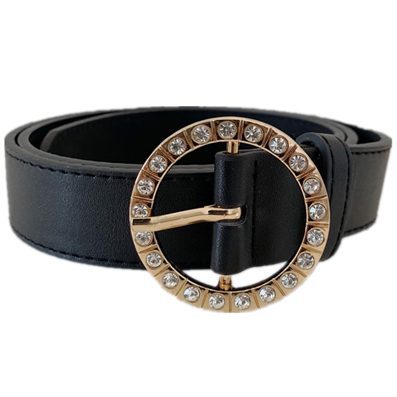 [Пряжка инкрустирована стразами - пряжка круглая - пряжка золотая!】