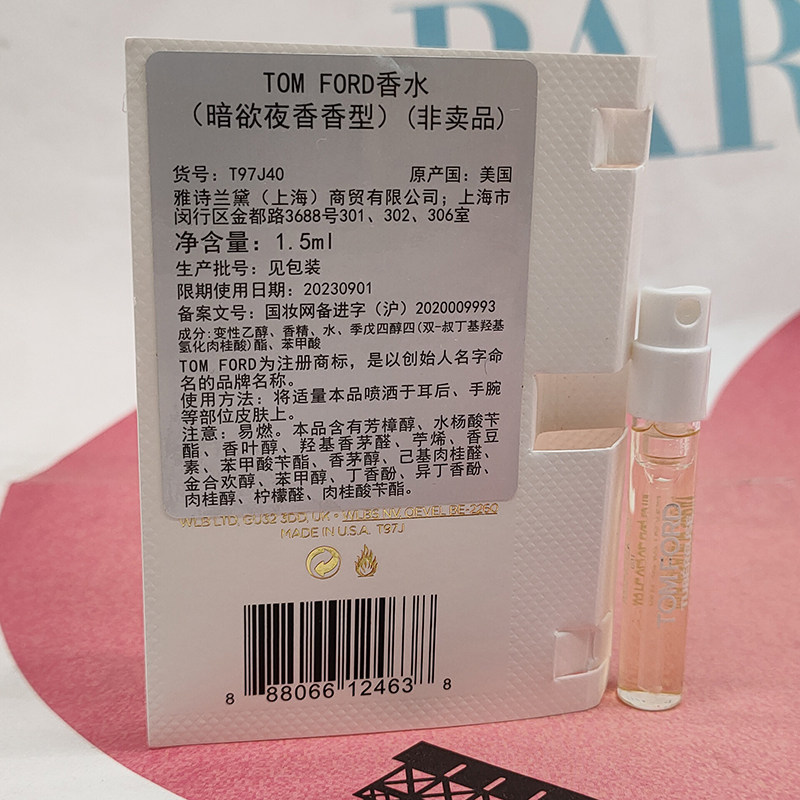 Tom Ford, янтарный пробник парфюма, белый мускус, 1.5 мл