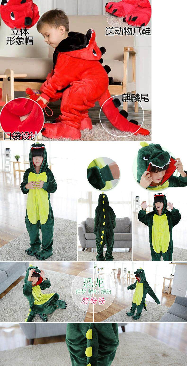 Демисезонный фланелевый детский динозавр, мультяшная пижама, костюм для мальчиков и девочек, xэллоуин, семейный стиль
