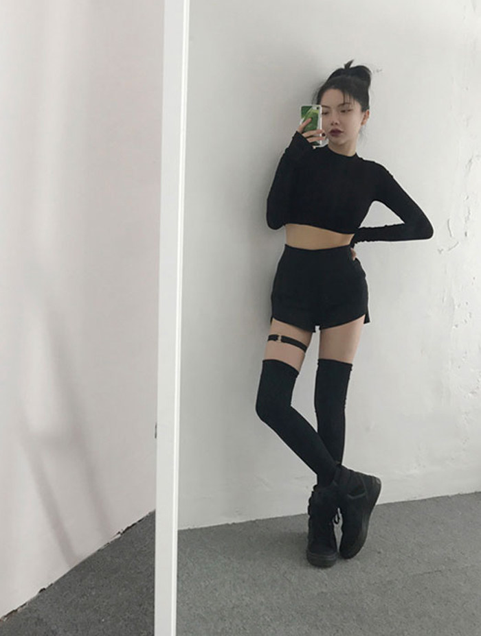| Цвет: | Черные шорты, портупея на ногу, Черный лонгслив, Белый лонгслив |