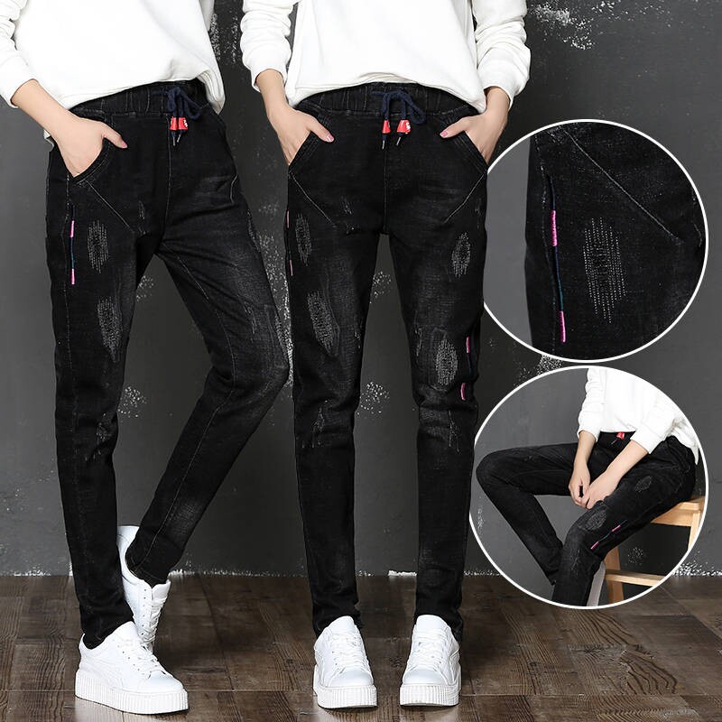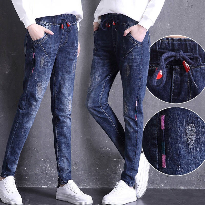 Джинсы, весенние штаны для школьников и студентов, эластичная талия, 2020, в корейском стиле