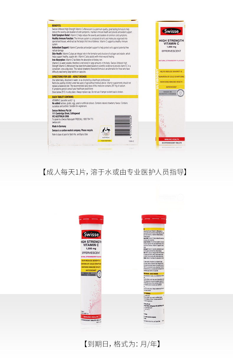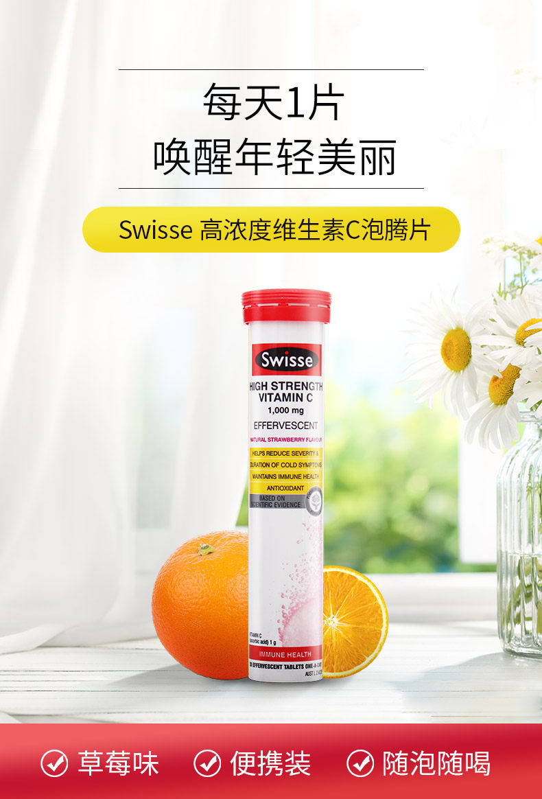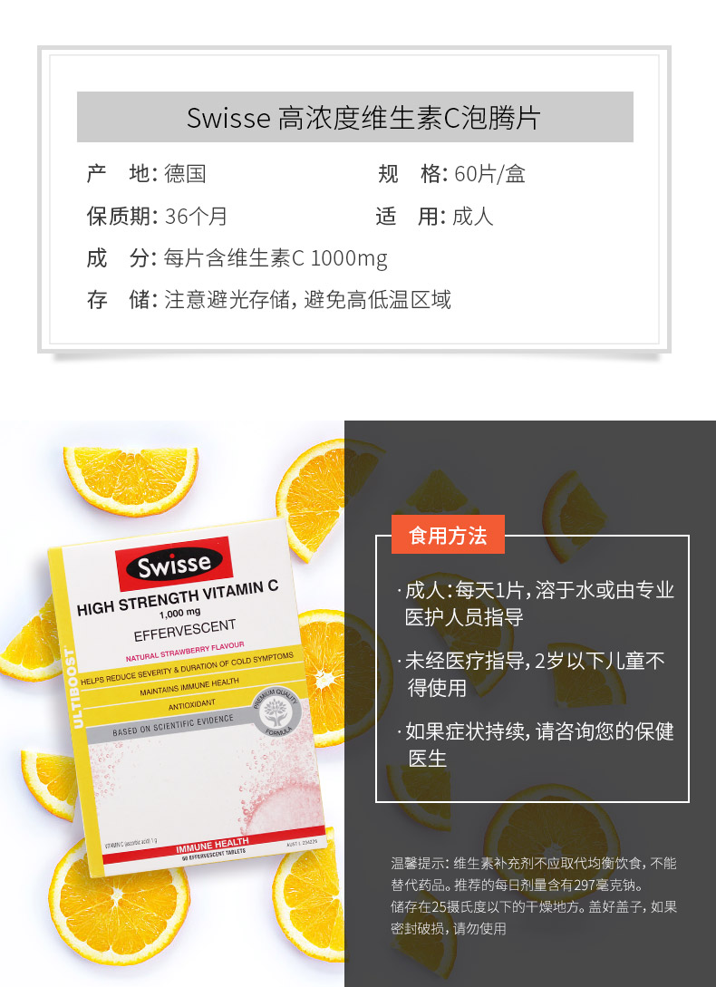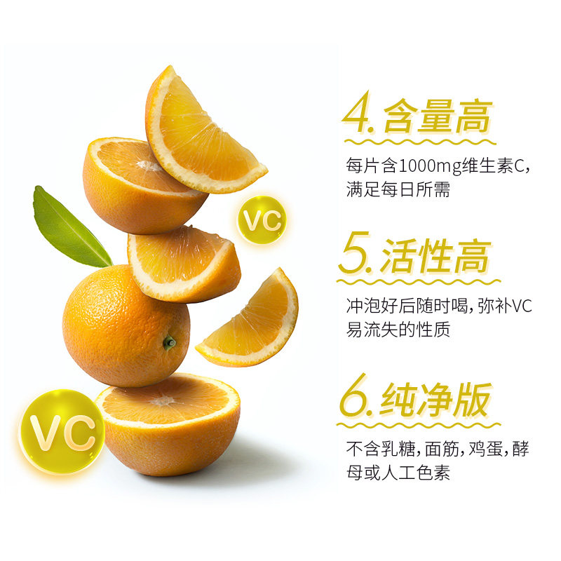 Натуральные витаминизированные лечебные шипучие таблетки, витамин C, 60 штук