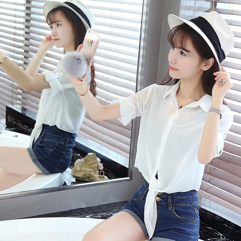 Летняя женская шаль Студент Студент с коротким рукавом рубашка с завязанными рубашкой