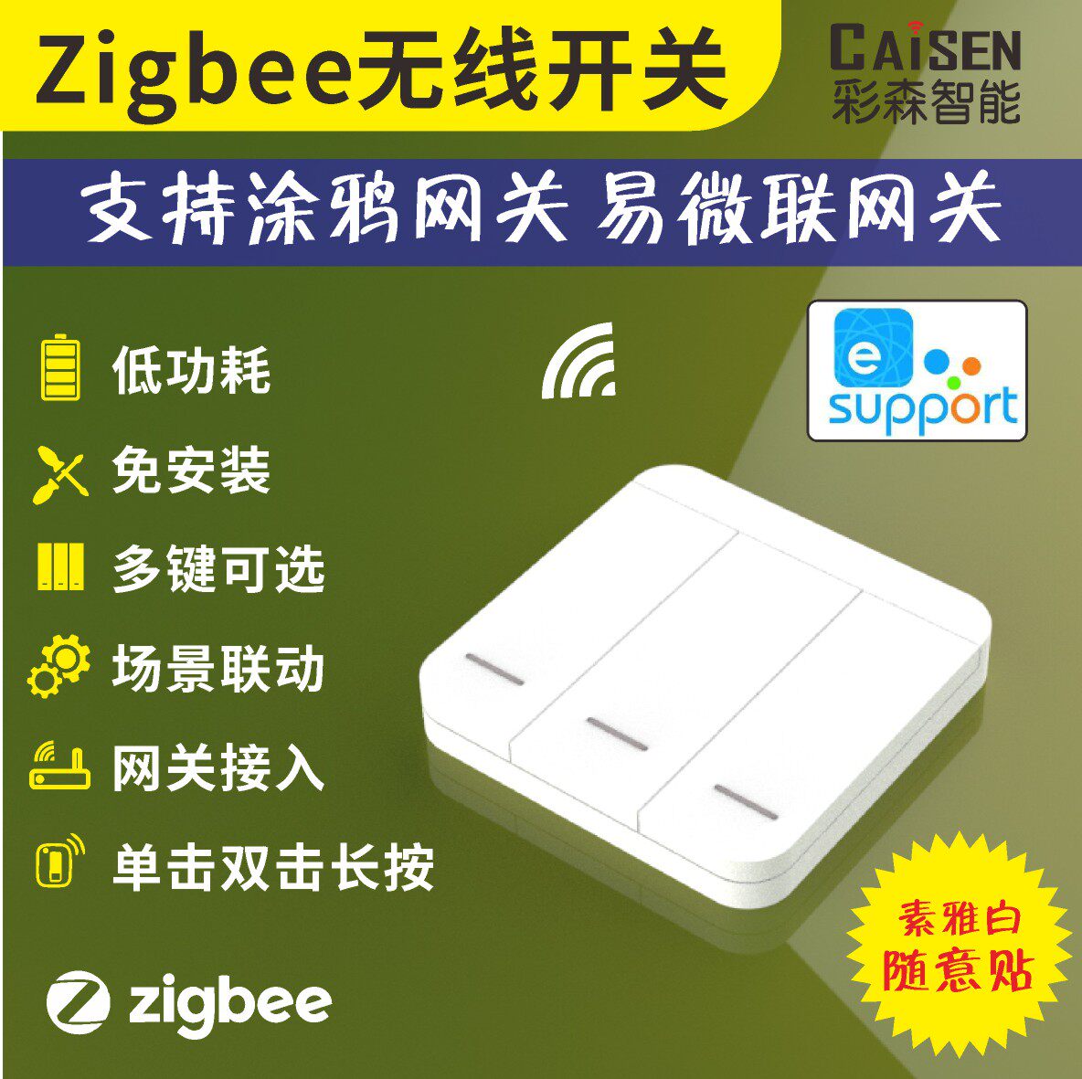 Легкие микро -микроперовые Caddy Zigbee Беспроводной переключатель.