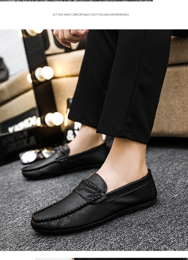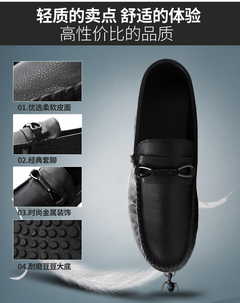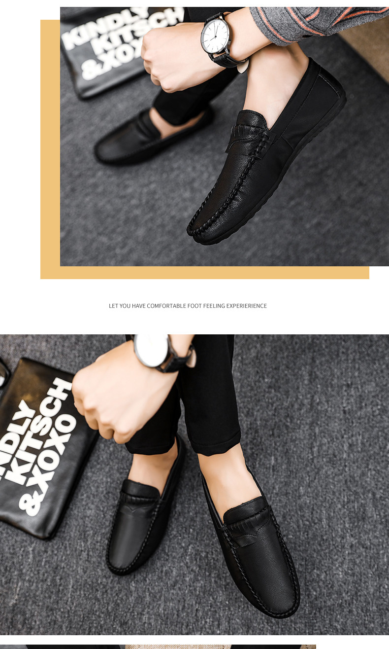Летние мужские туфли-шапки с кожаным верхом, корейская версия модных и повседневных кожаных туфель для мужчин с социальным духом и одноногие ленивые мужские туфли.