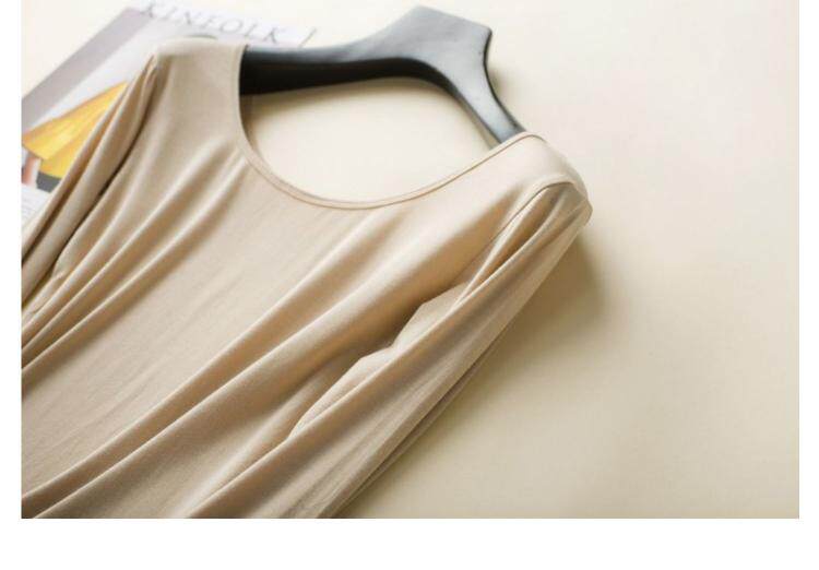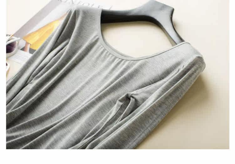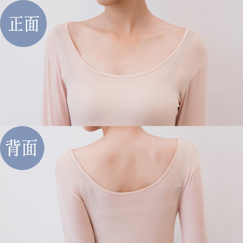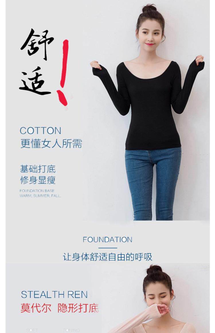 Большая вырез Простая летняя одежда, модальные длинные рукава, футболка с низким воротником, женский подвал, одиночная одежда, нижнее белье, U