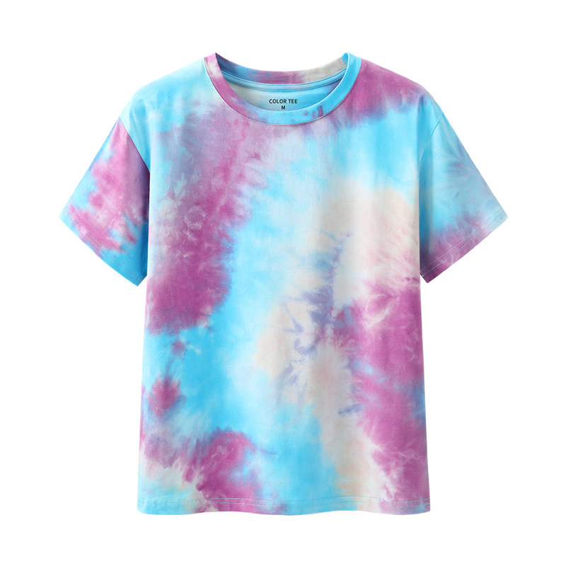 艾米恋 Хлопковая летняя сиреневая базовая футболка с коротким рукавом, свободный крой