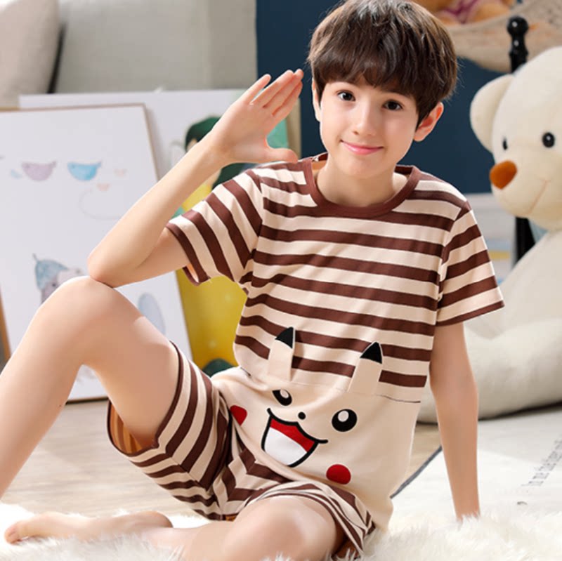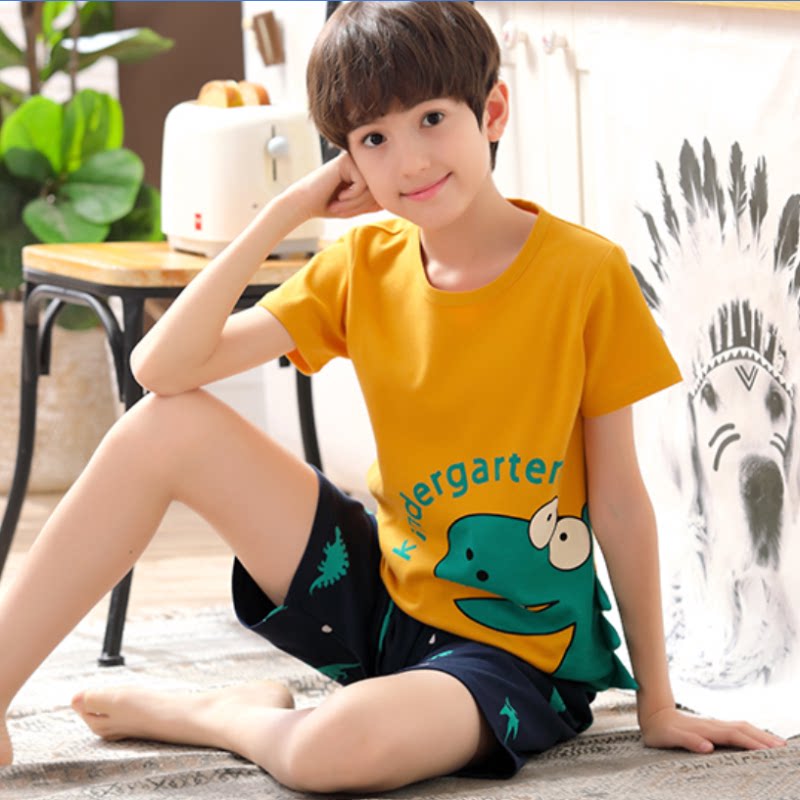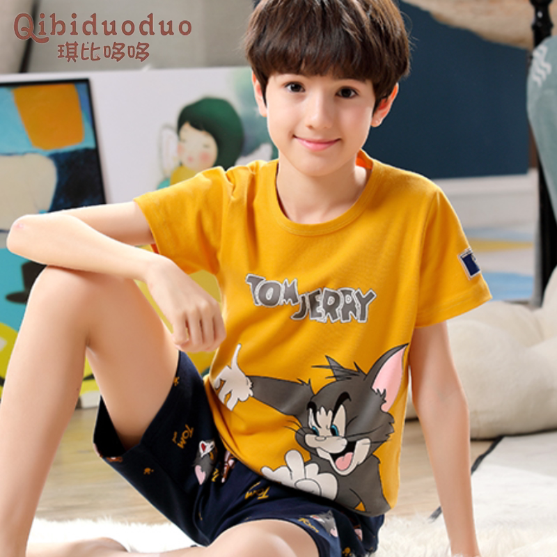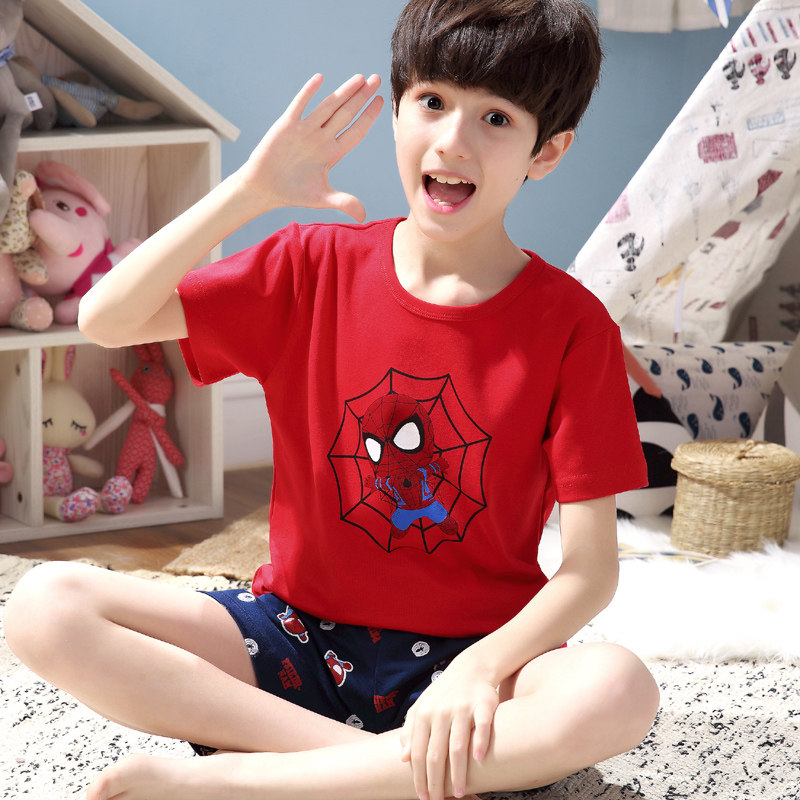 Мультяшная пижама для мальчиков, красный хлопковый комплект, короткий рукав, в западном стиле, свободный крой