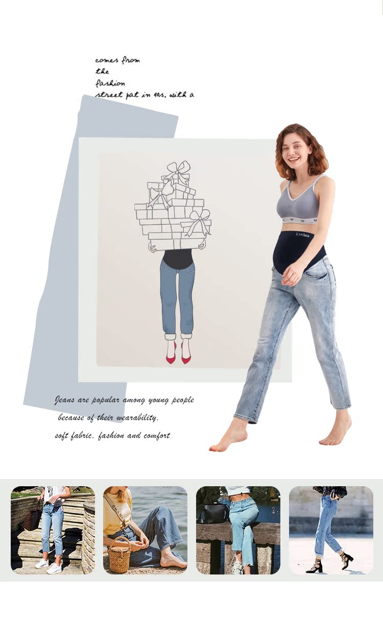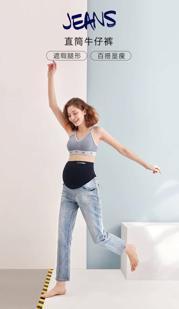 Осенние джинсовые штаны для беременных, свободный прямой крой, популярно в интернете