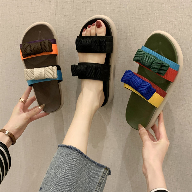 Слайдеры, модные универсальные тапочки с бантиком на платформе, пляжная обувь, популярно в интернете, коллекция 2022