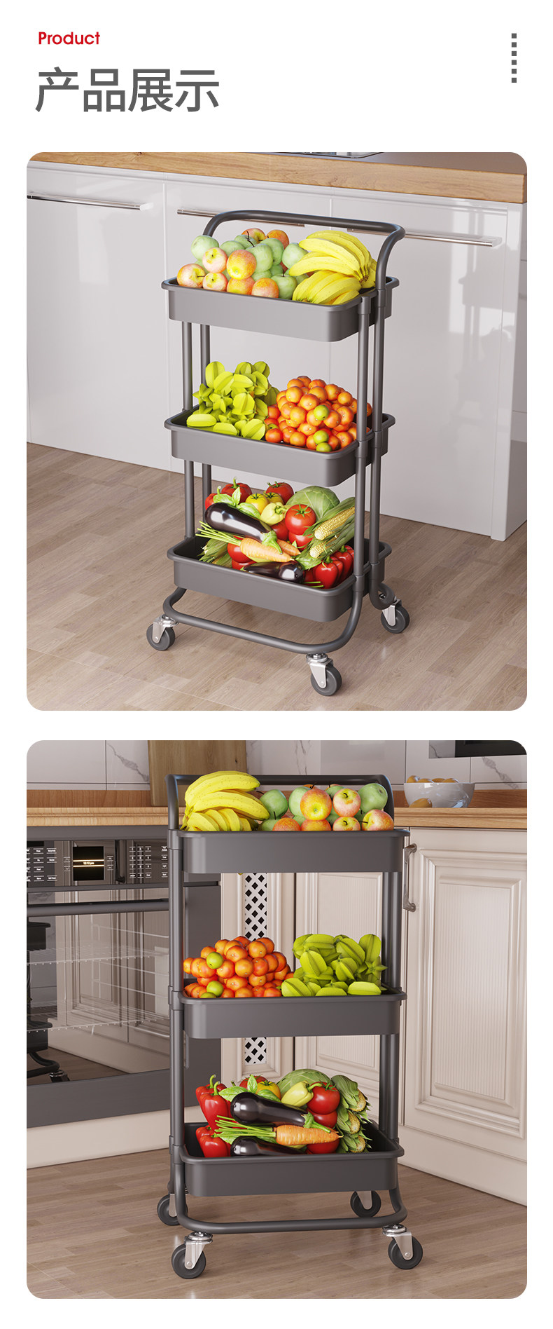 Овощная корзина может переместить овощной полки на полу кухни, овощи, овощи, фрукты и корзины для хранения фруктов и положить овощи