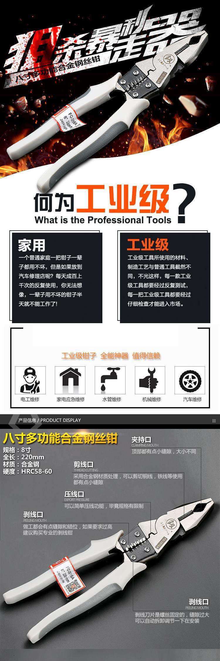 Импортная универсальная стальная проволка, плоскогубцы, 8 дюймов, Германия, тигр