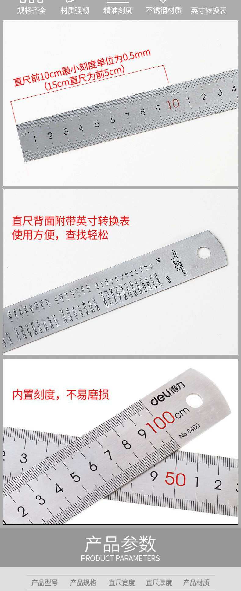Пластиковая линейка из нержавеющей стали, 1м, 20/30/40/50/60см