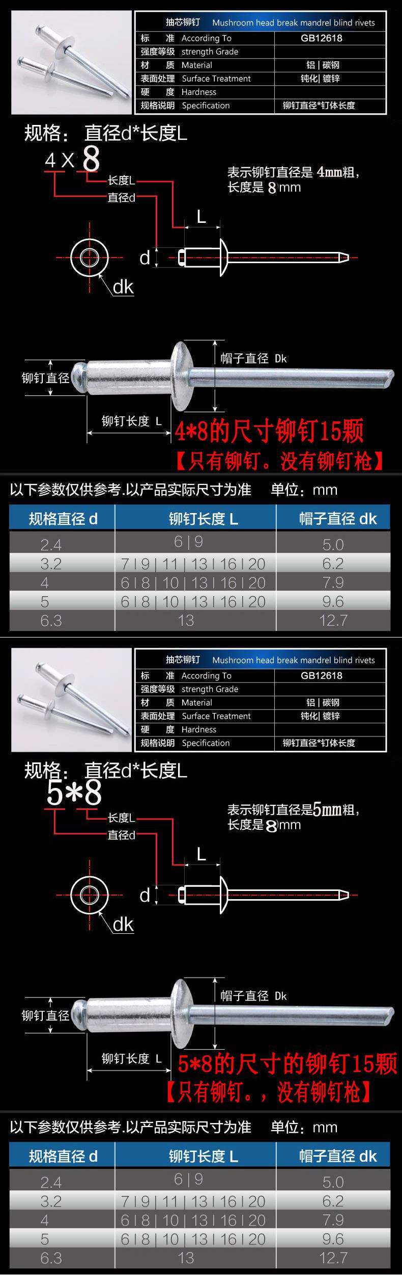 | Цвет: | Только размер заклепки 4*8 [15 заклепок], Только размер 5*8 [15 заклепок], Набор заклепков [плюс 15 4*8 заклепок], Набор заклепков [плюс 15 5*8 заклепок] |