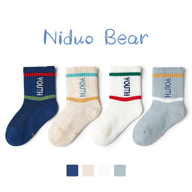 尼多熊 Детские тонкие дышащие хлопковые летние носки для мальчиков, средней длины