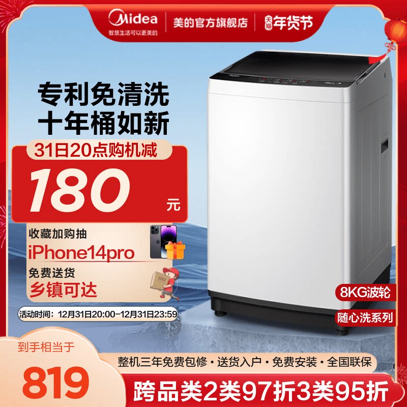[Промывка в завещании] Midea 8 кг стиральная машина Полностью автоматическое домашнее мастерное колесо Официальный флагманский флагман с большой мощностью Eco1