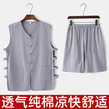 Летняя хлопковая ретро пижама, комплект, китайский стиль, большой размер