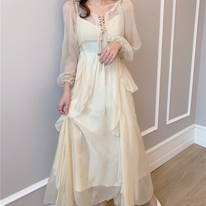 Летнее шифоновое платье-комбинация, модный комплект, 2020, популярно в интернете, защита от солнца, в западном стиле