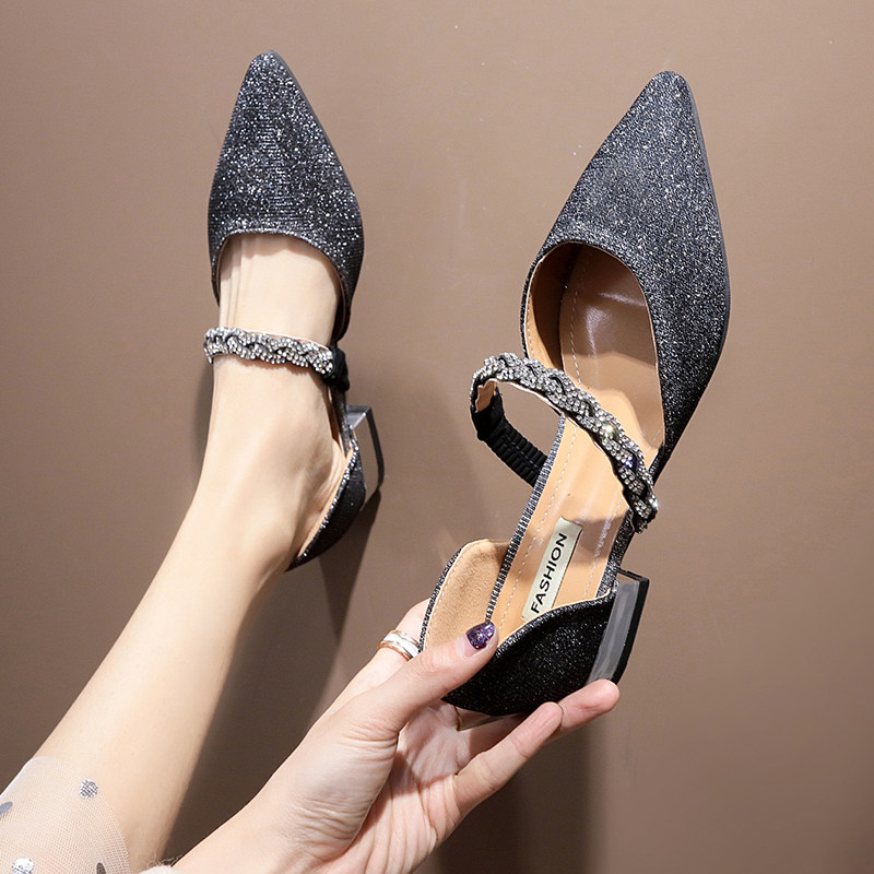 Туфли со стразами, неглубокий вырез на небольшом низком каблуке, туфли на плоской подошве, сказочные туфли весеннего стиля 2020, юбка, нежный вечерний вариант.