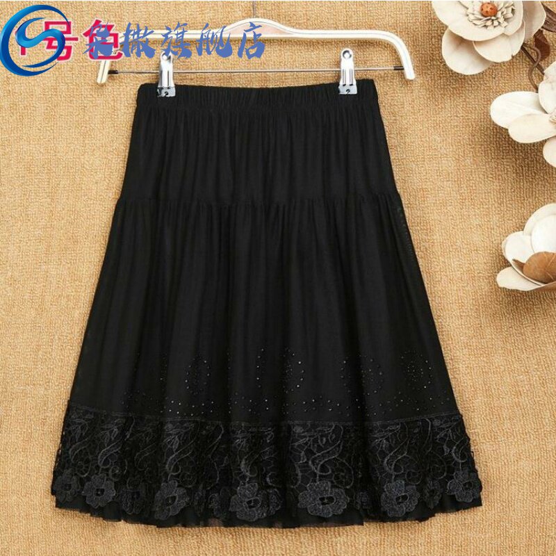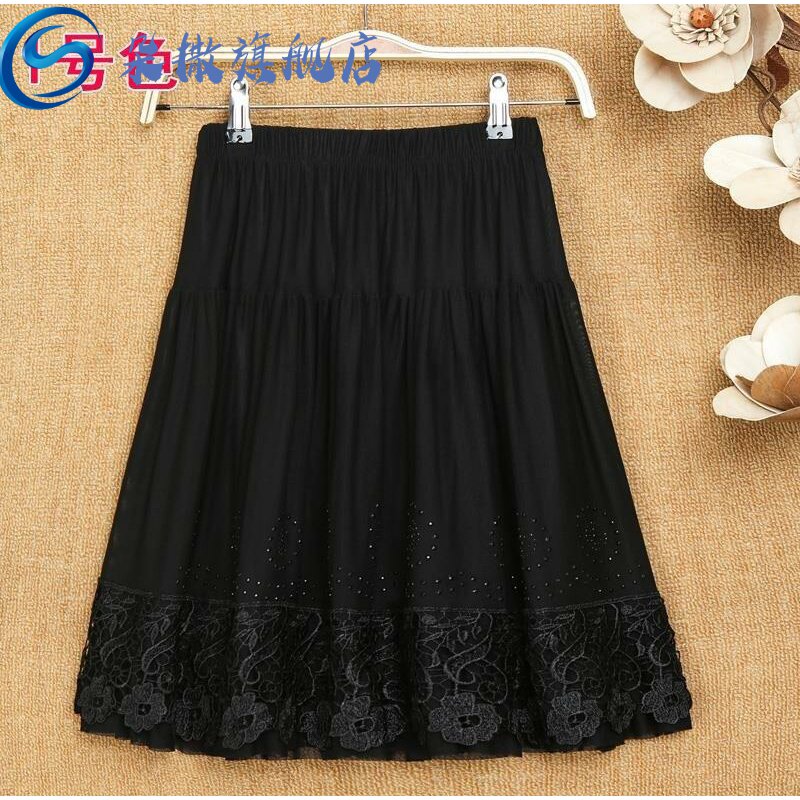 [。中长花色春春妈妈半身裙通勤小黑裙老人纱裙中年装矮个子女裙中]