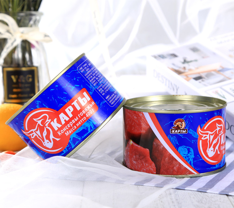 Русский блюдо из говядины -консервированной ланч может открыть кастрюлю и еду без крахмалистой кухни еды.