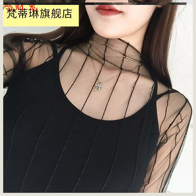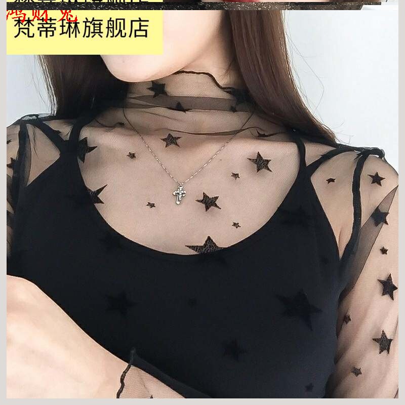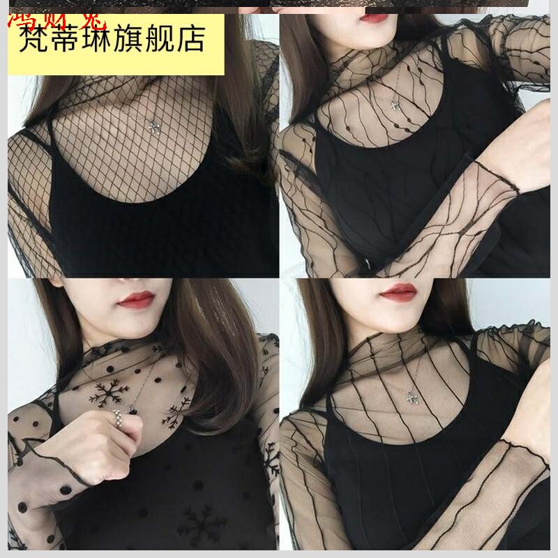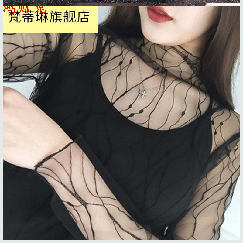 Ультратонкая кружевная черная базовая приятная телу футболка, сексуальный ультратонкий лонгслив