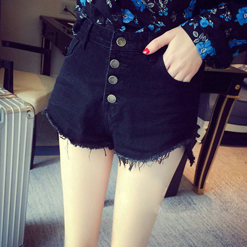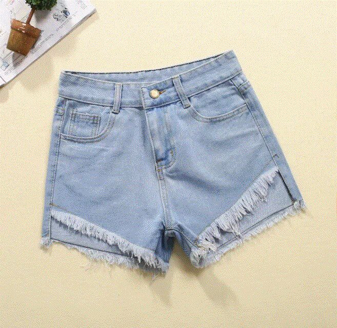 Шорты, приталенные джинсовые эластичные штаны, высокая талия, в обтяжку
