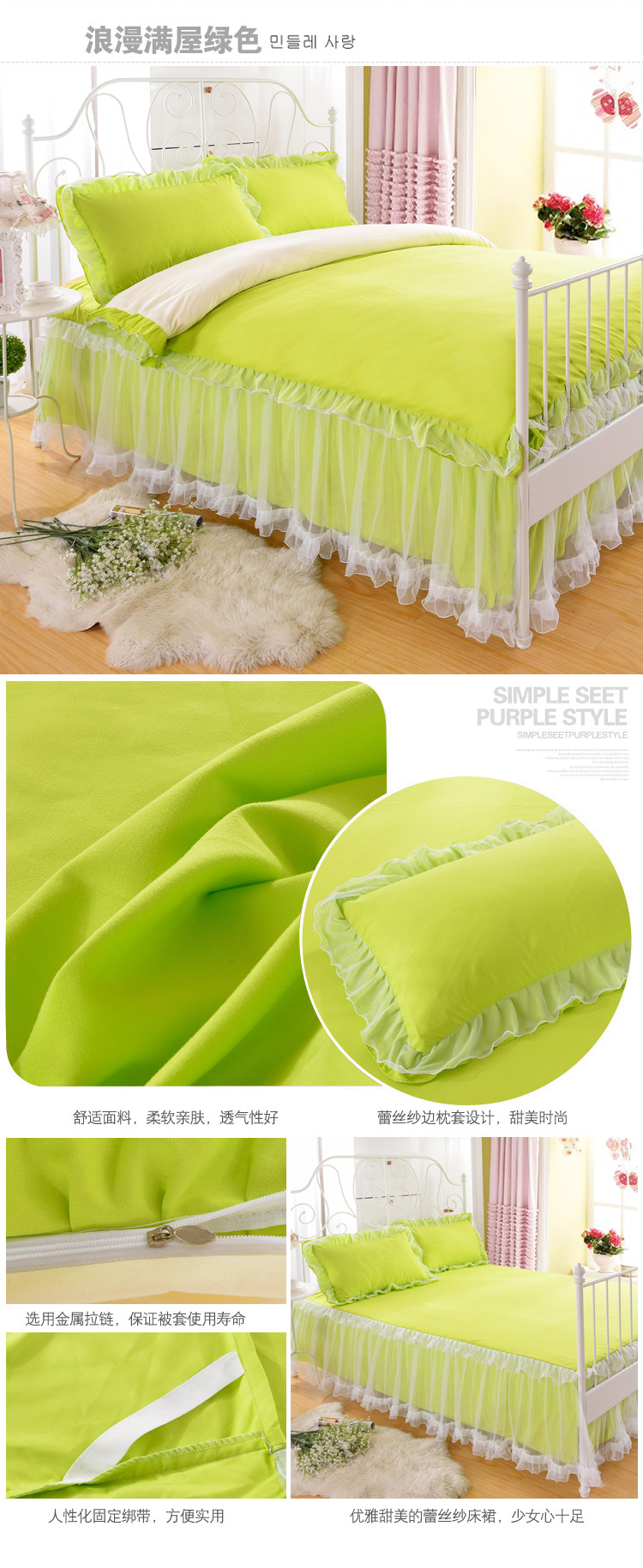 - 1,5 -метровая юбка для кровати с четырьмя наборами [стеганое одеяло 180x220 см]