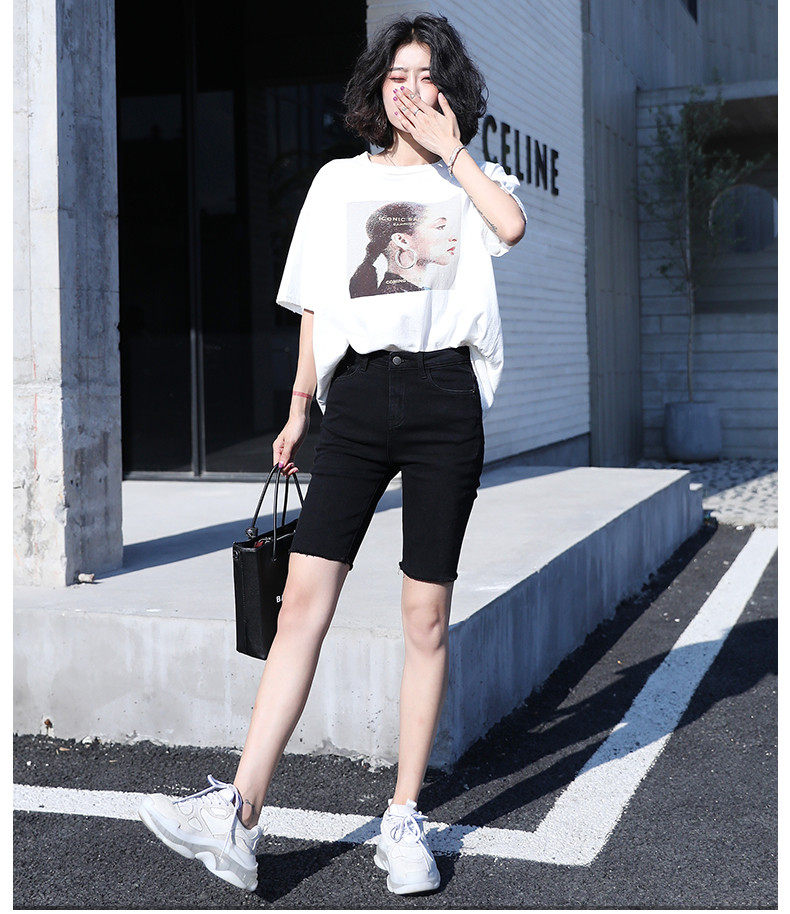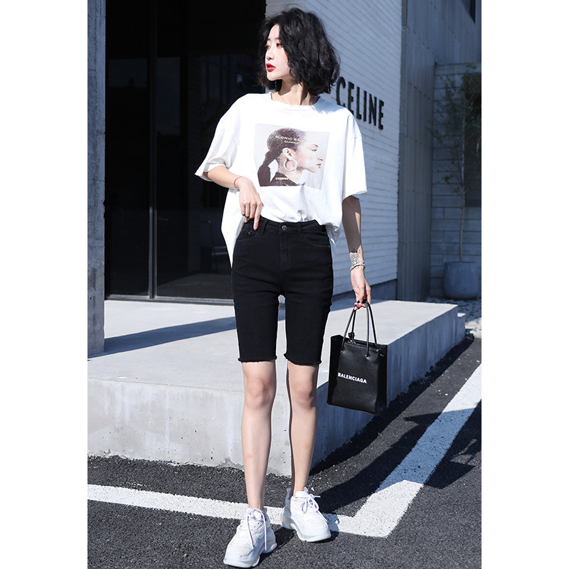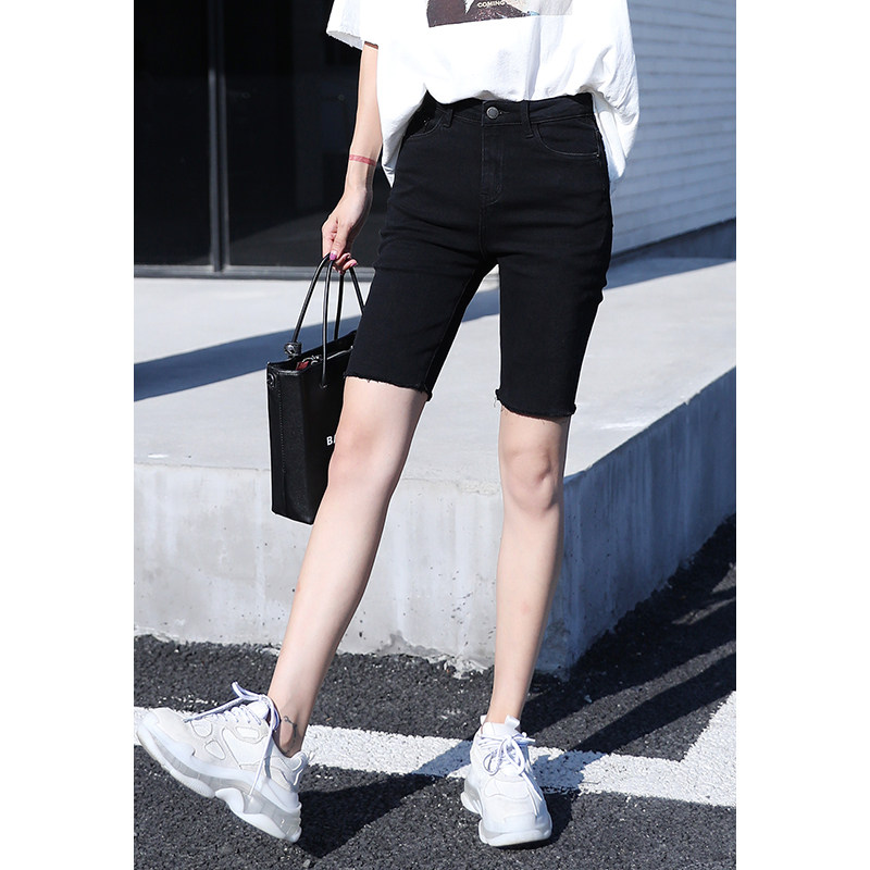 Черная джинсовая юбка, шорты, эластичные штаны, высокая талия, свободный прямой крой, в обтяжку, по фигуре