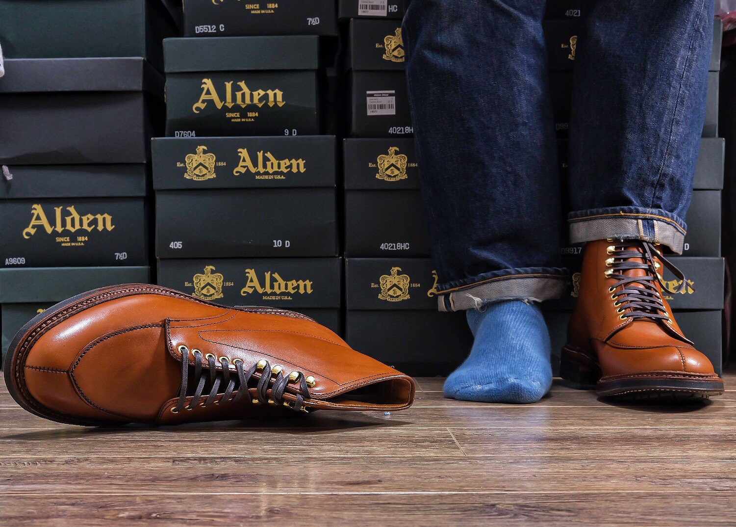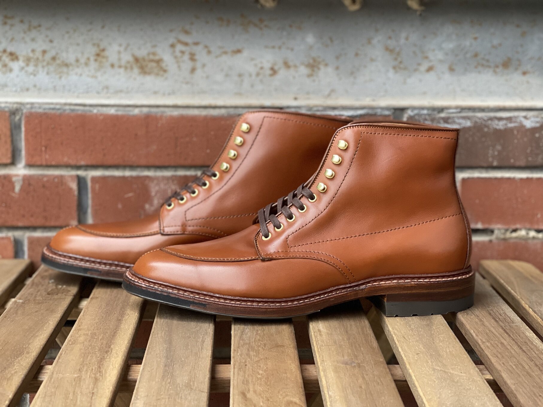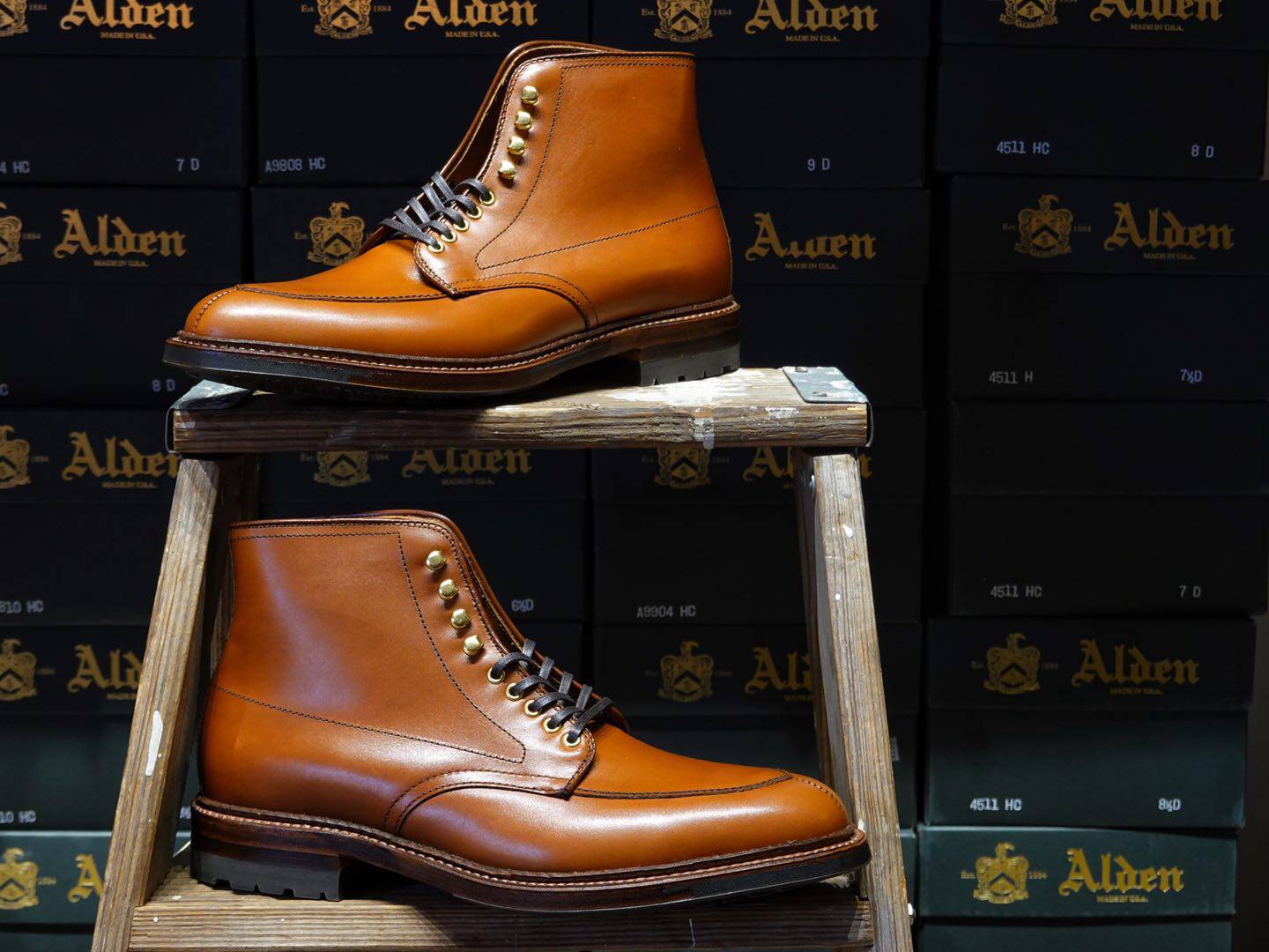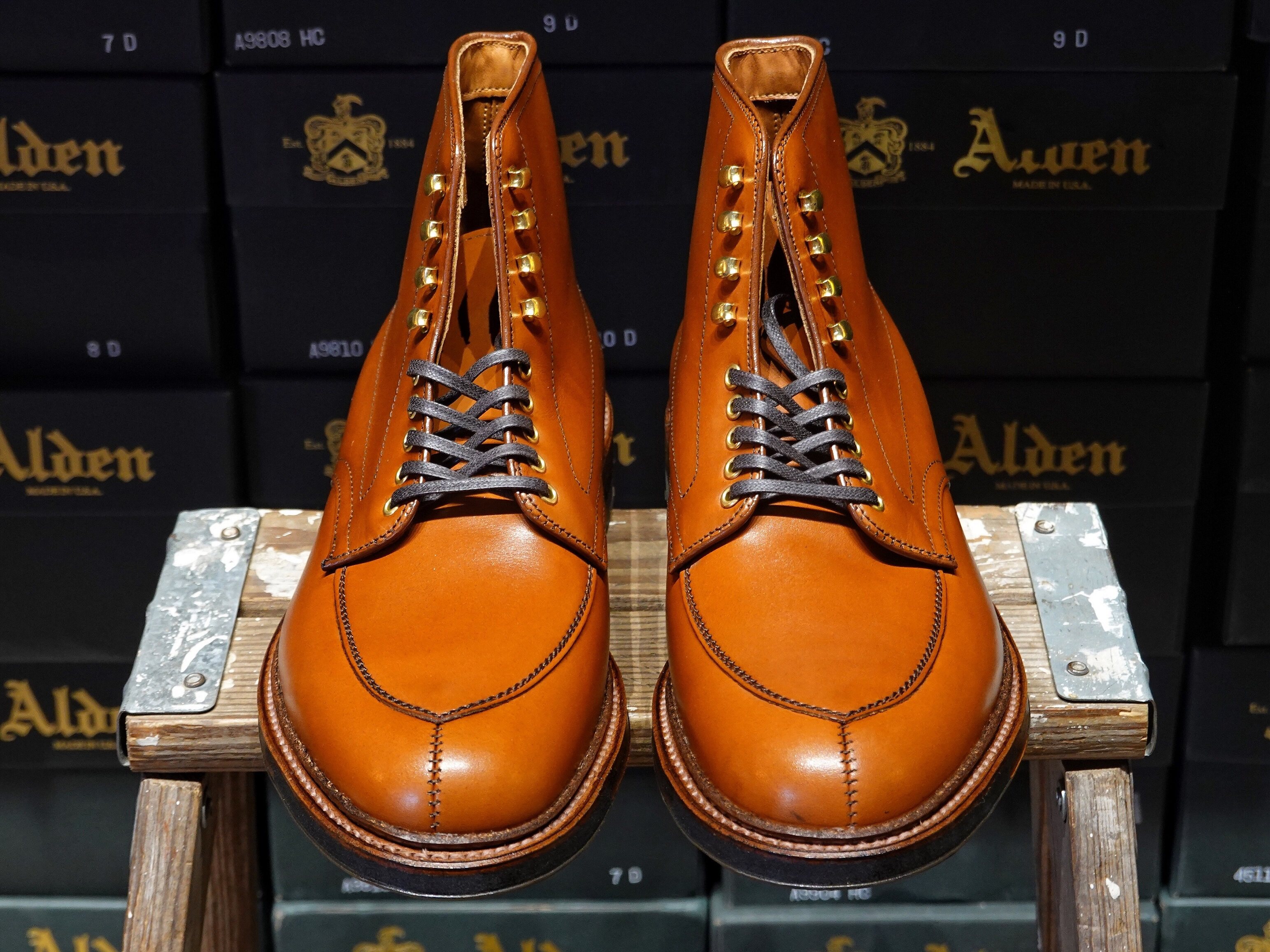 [Домашнее место] Alden V-Tip High-Gang-Gang-Gang-Gang-кожа кожаный ботинок виски цвет светло-красный волк снизу