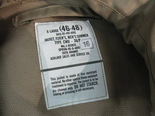 Фрукты плесени CWU 36P куртка песка Color XL Короткая талия тонкая талия тонкая материальная огненная огненная огненная огнестойкость