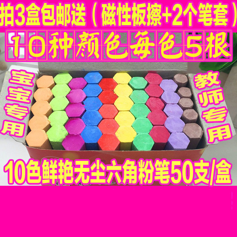 Национальный без пыли красочный цветной шестиугольный шестигранник 50 Blackboard Ten Color Color газета 3 коробки без мела без доставки