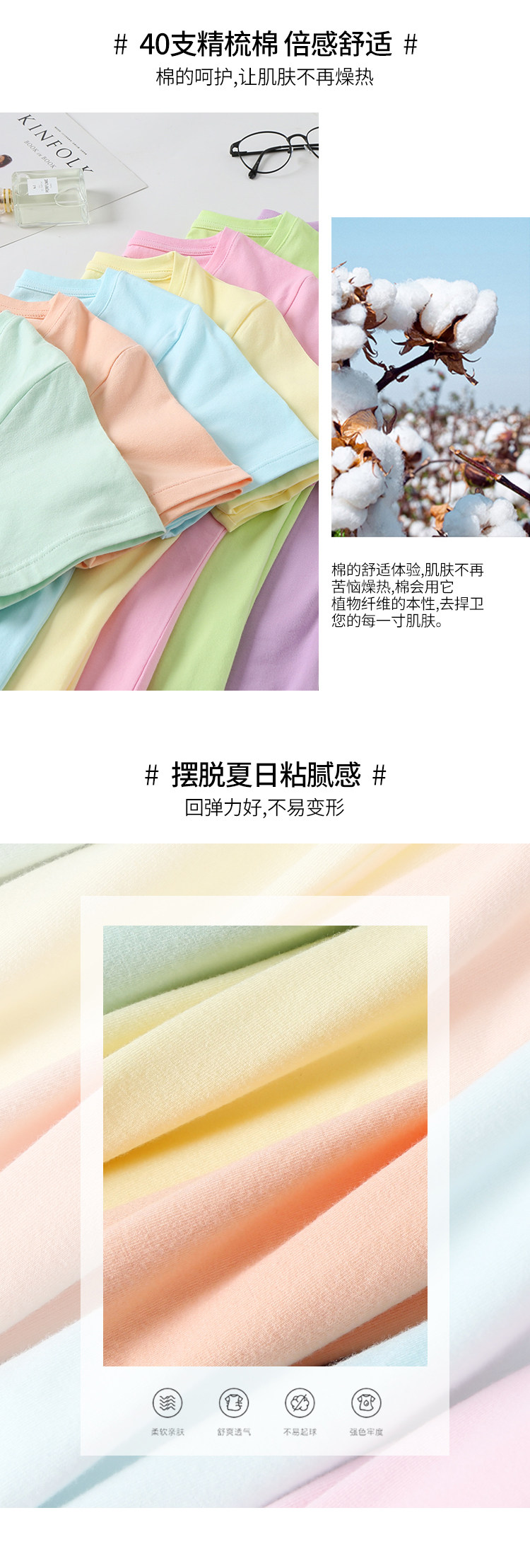 艾米恋 Хлопковая цветная футболка с коротким рукавом с круглым воротником, облегающий крой, в обтяжку