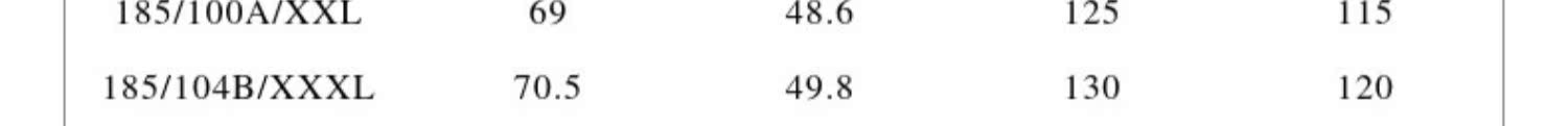 | Размер: | 160/80A/XS, 165/84A/S, 170/88A/M, 175/92A/L, 180/96A/XL, 185/100A/XXL, 185/104B/XXXL |