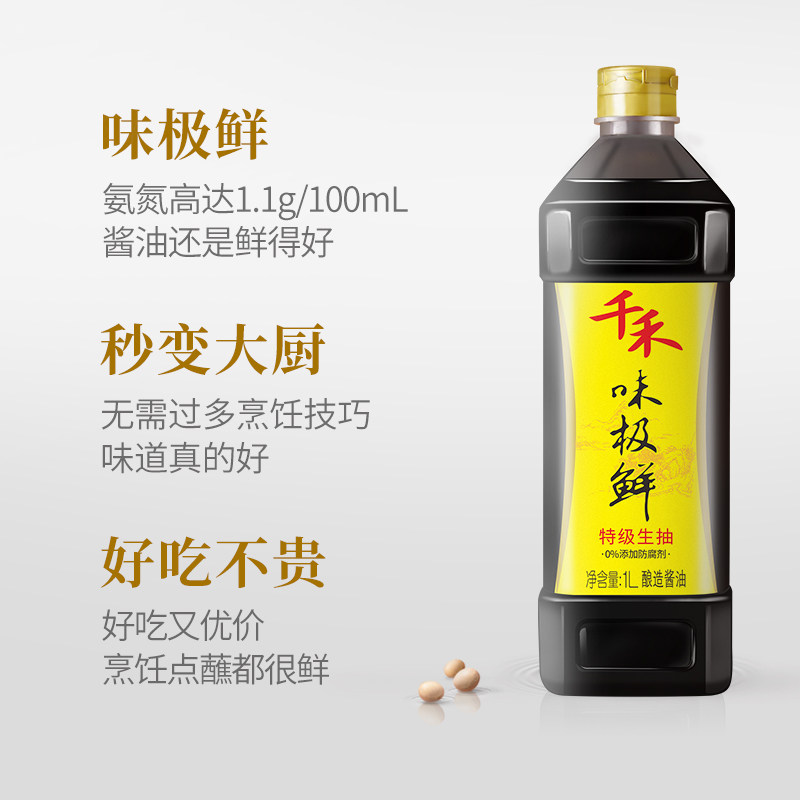 千禾 Сырой соевый соус чрезвычайно свежий соевый соус 1 л -высокий клад